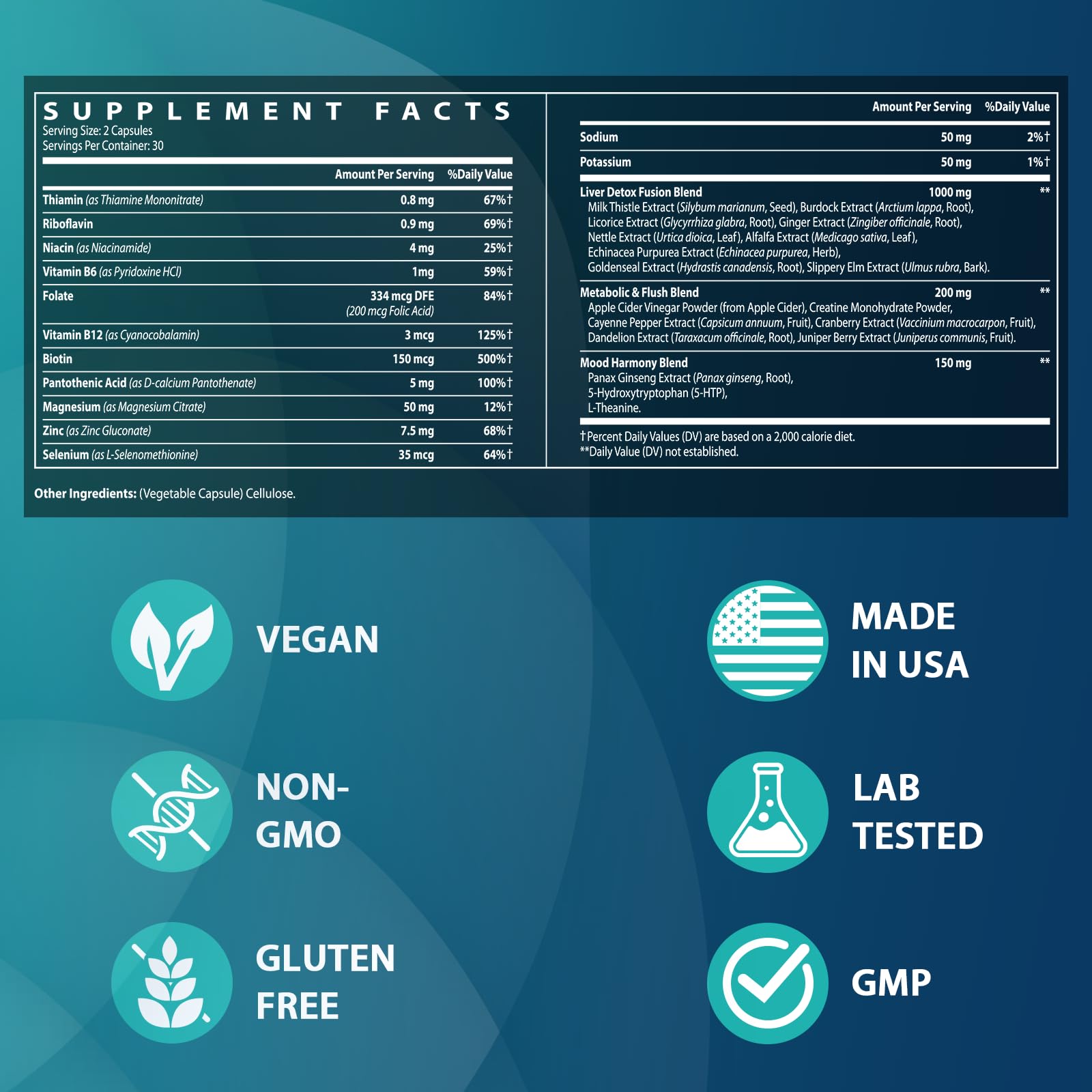 - Safe & Natural Formula: Made with non-GMO, gluten-free, and vegan-friendly ingredients for a safe detox process without side effects.