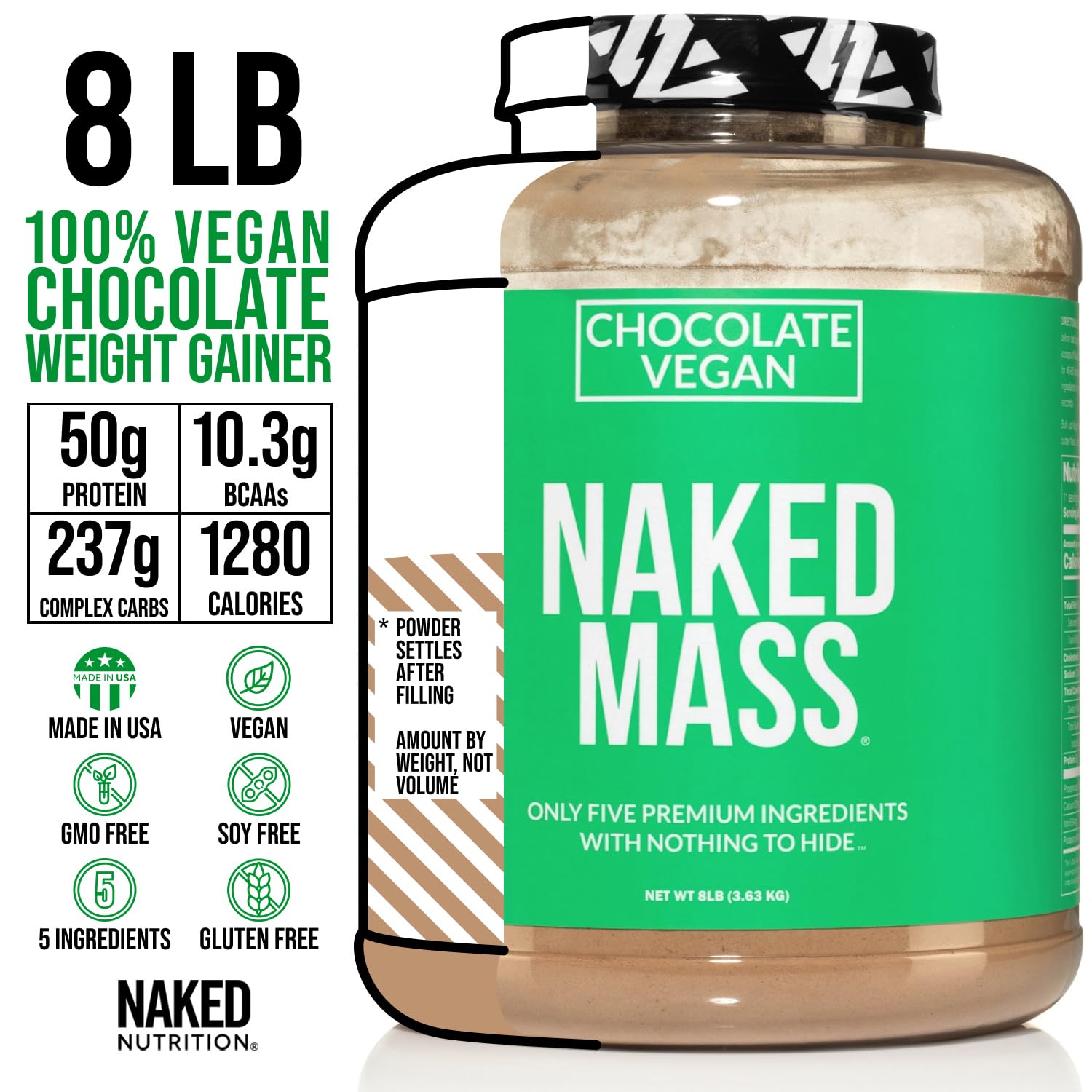 - REAL CLEAN PROTEIN: Gain weight the right way with our lactose free weight gainer, which contains our premium Naked Pea and Naked Rice protein. Chocolate Naked Vegan Mass provides your body with the amino acids it needs to maintain protein synthesis and help you gain muscle when used with a weightlifting fitness routine.