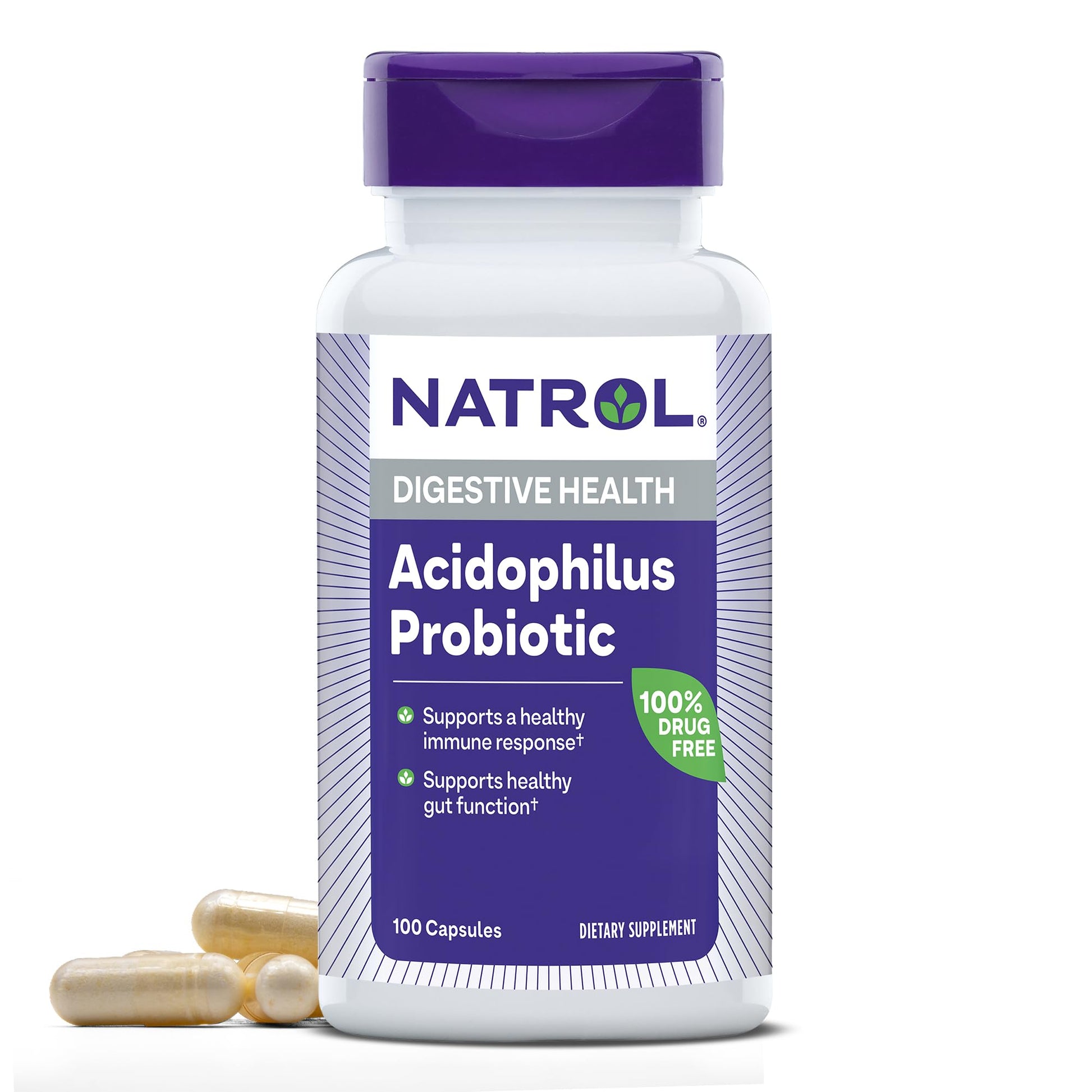 - Acidophilus Supplements for Digestive Health: One 100 count bottle of Natrol 100 mg Acidophilus Probiotics for a 33-day supply
