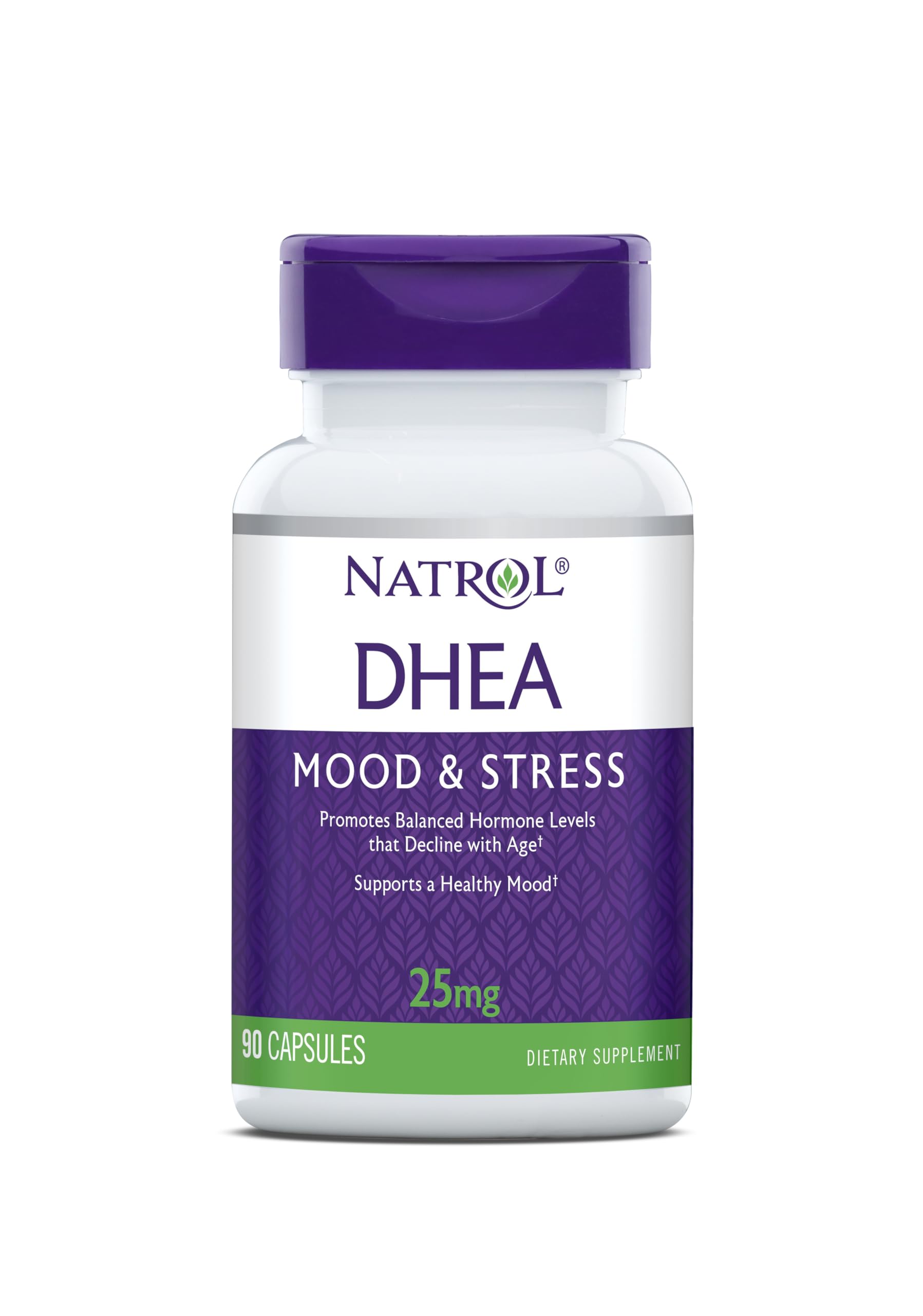 - Mood and hormone support supplement*: Contains one 90 count bottle of Natrol Mood & Stress DHEA 25mg Capsules for a 90-day supply