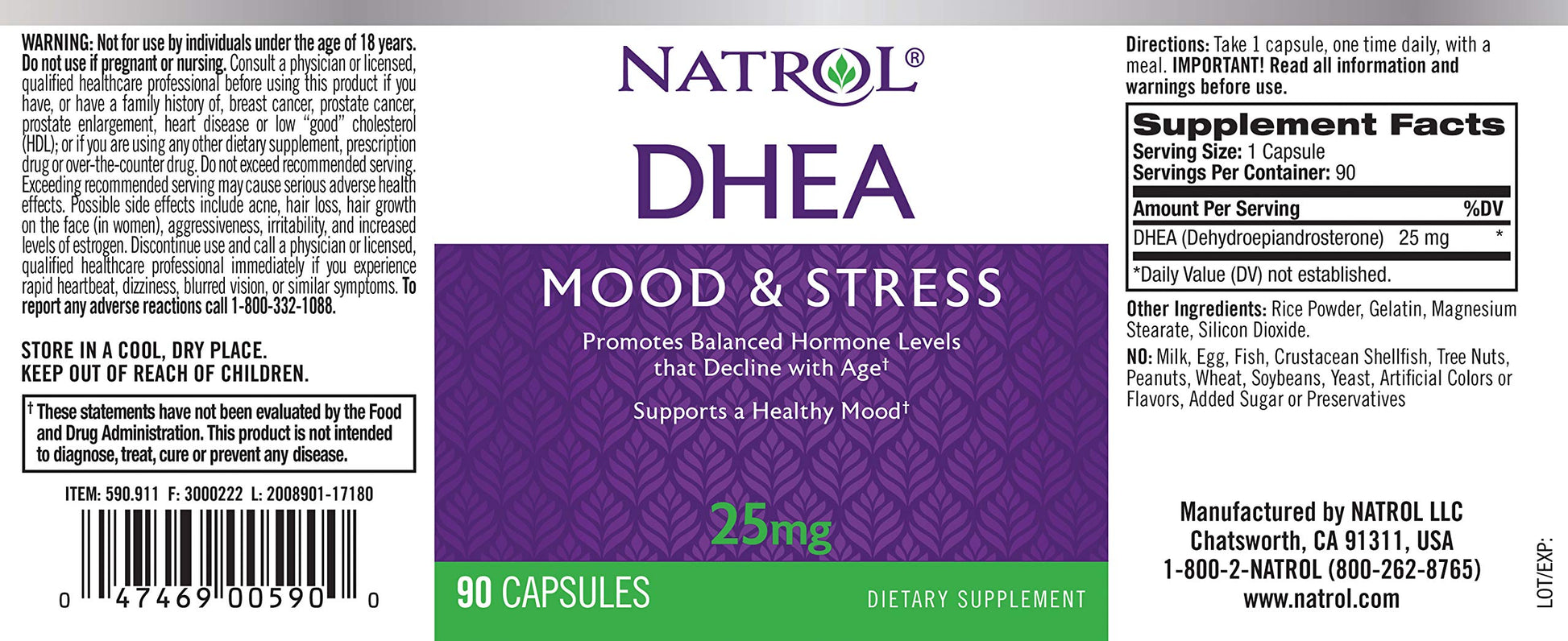 - Dietary supplement with 25mg of DHEA to promote the balance of certain hormone level that decline with age*