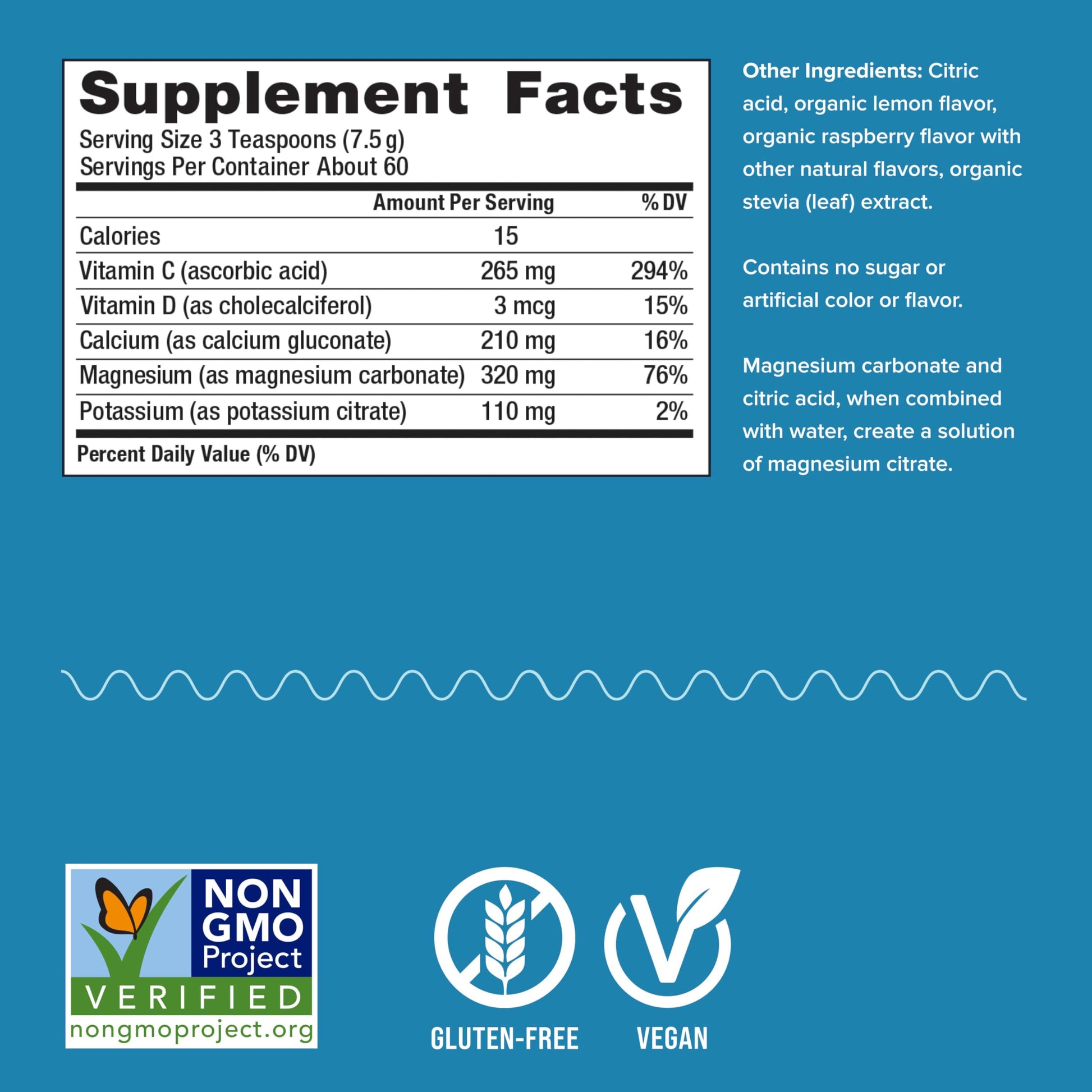 - NON-GMO PROJECT VERIFIED: Calcium and magnesium drink mix is Non-GMO Project Verified, gluten free, vegetarian and made without sugar or artificial flavor or color