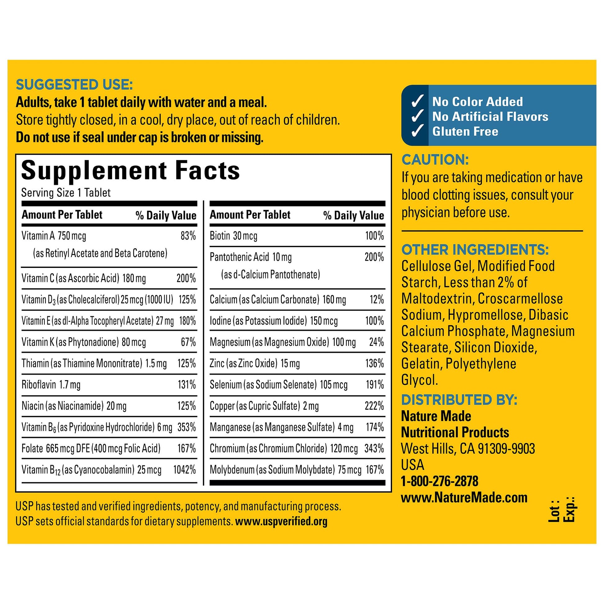 - USP has tested and verified ingredients, potency and manufacturing process. USP sets official standards for dietary supplements. Visit the USP verified website for more information.