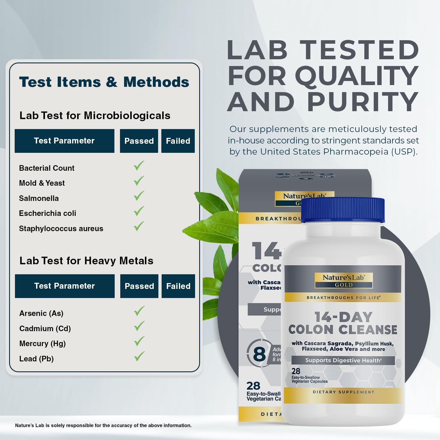 Nature's Lab Gold 14 Day Colon Cleanse* - Blend of Probiotics, Fiber, Flavonoids, Plant Extracts - 28 Ct (14 Day Supply)