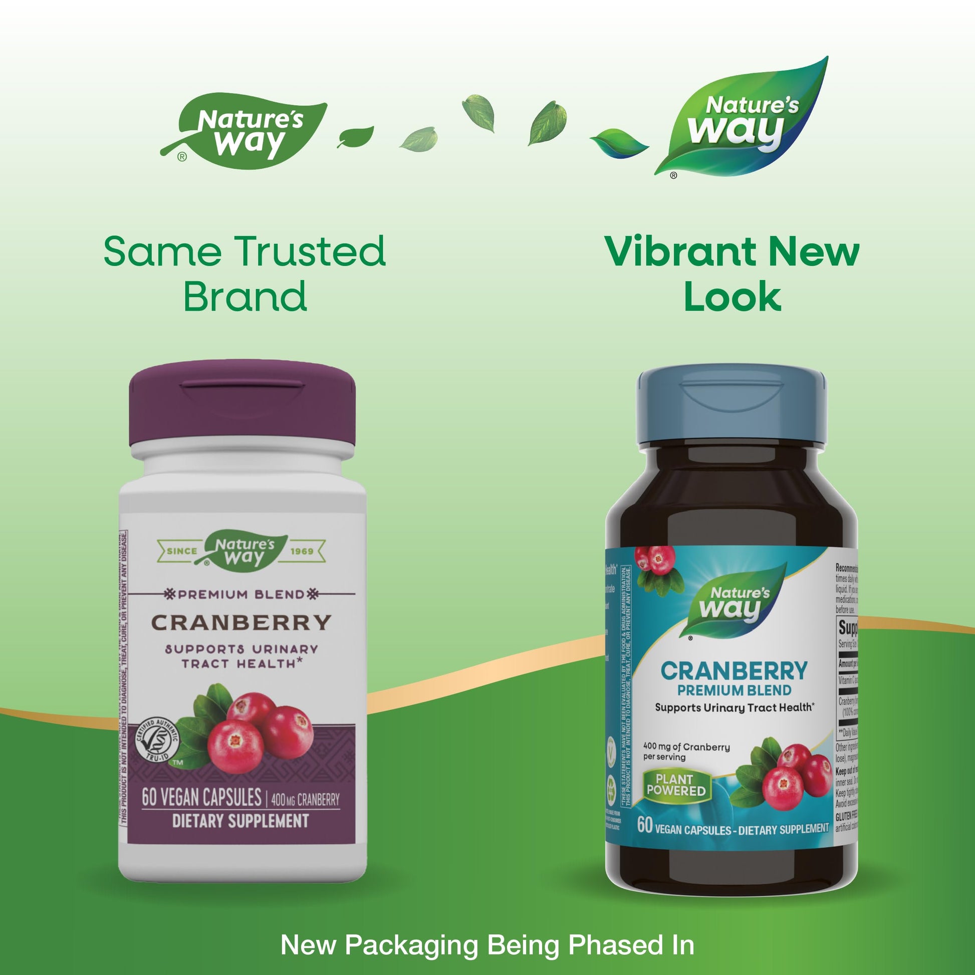 Nature's Way Premium Blend Cranberry, Urinary Tract Health Support*, with 100% Cranberry Concentrate, 400 mg Per Serving, 60 Capsules (Packaging May Vary)