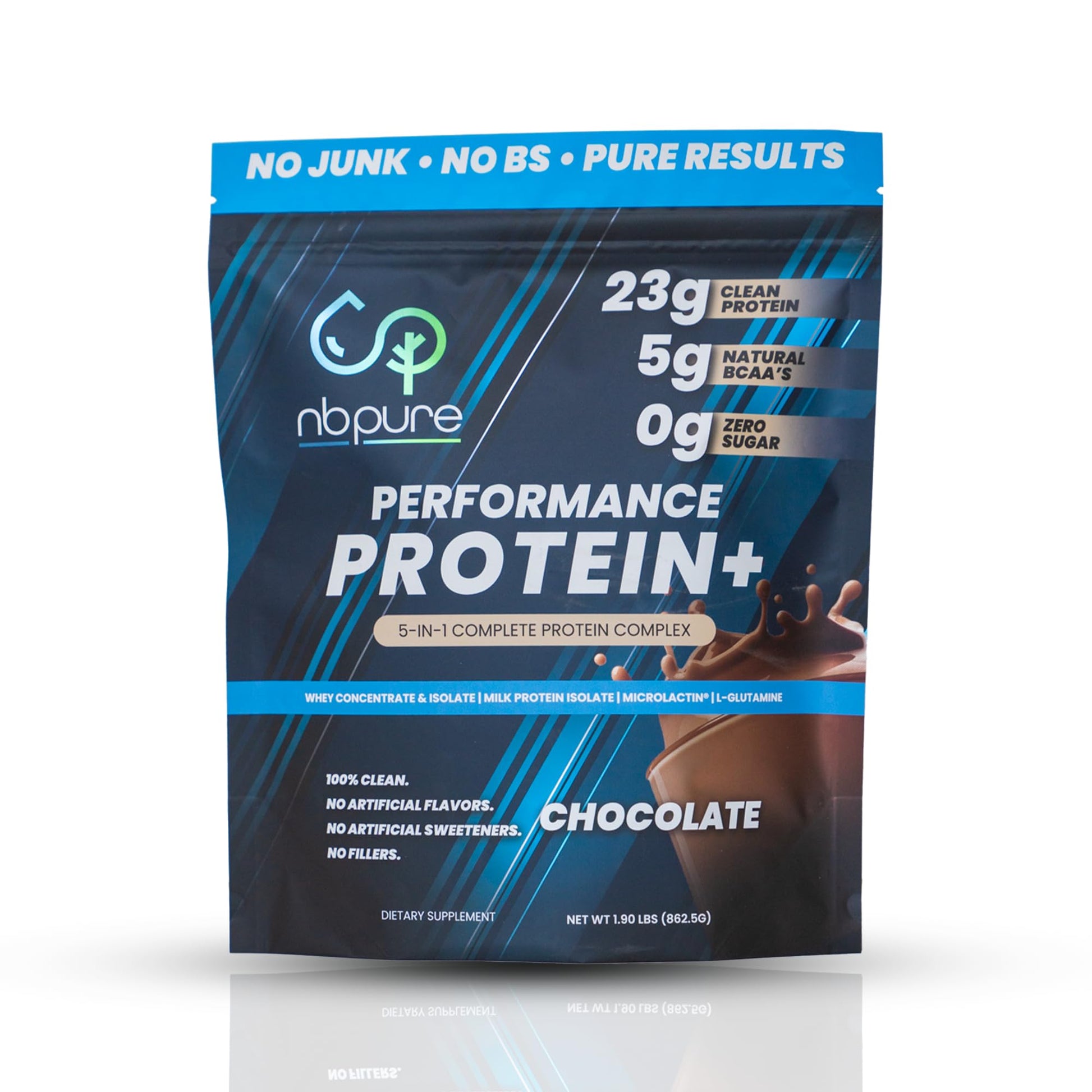 nbpure Performance Protein+: Natural Protein Blend- 23g Whey Isolate & Concentrate + Milk Protein Isolate- Clean, Healthy Protein Powder - Nothing Artificial, Chocolate