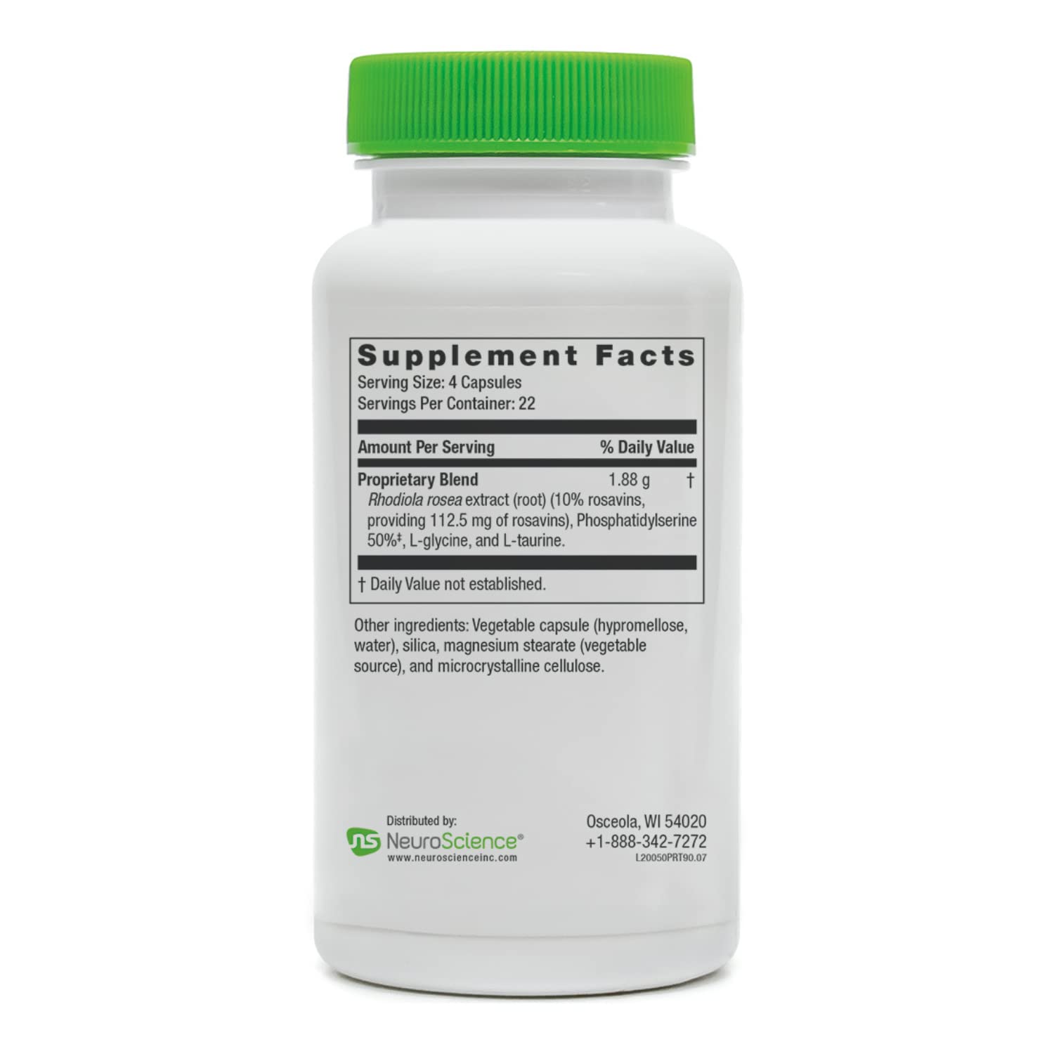 NeuroScience Calm PRT - Rhodiola Rosea Adrenal Health Supplement to Support Sleep, Mood, Regulate Stress + Help Reduce Anxiousness - Sleep Supplement with Glycine, Taurine, Cortisol (90 Capsules)
