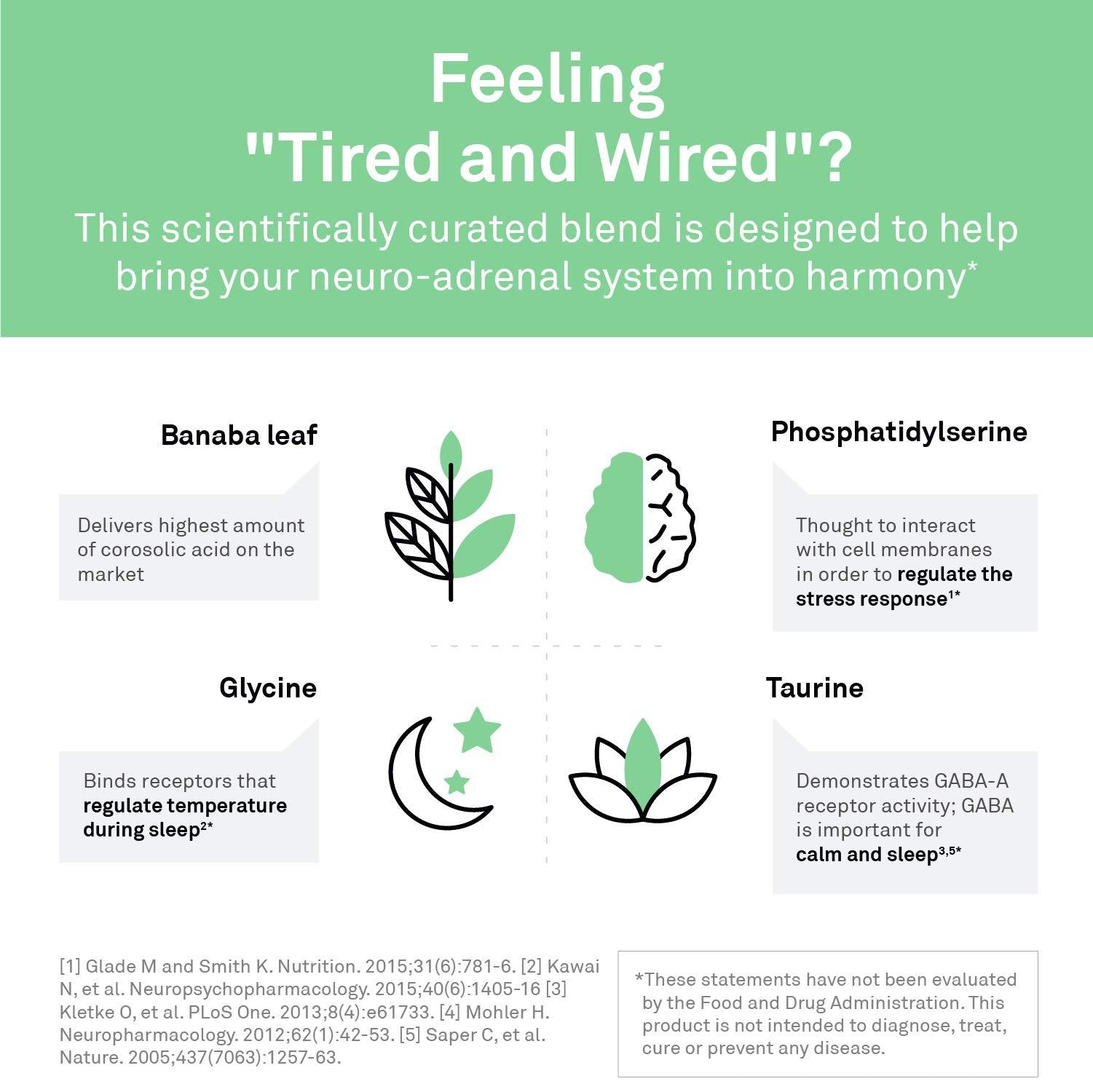 - Support Whole Body Health - This cortisol calm aid combines banaba leaf extract with glycine and taurine to help the body counteract the increased abdominal fat that is often associated with elevated cortisol levels at bedtime.*