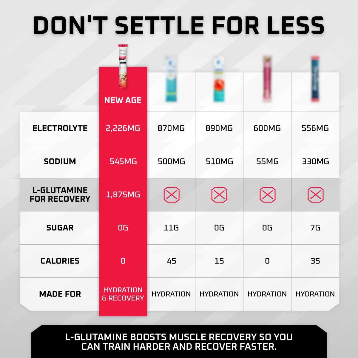 New Age Performance Hydration Packets, Electrolytes Powder, Liquid Enhancer for Dehydration Relief, L-Glutamine Amino Acids for Muscle Workout Recovery, Sugar Free & 0 Calorie, 16 Sticks (Fruit Punch)