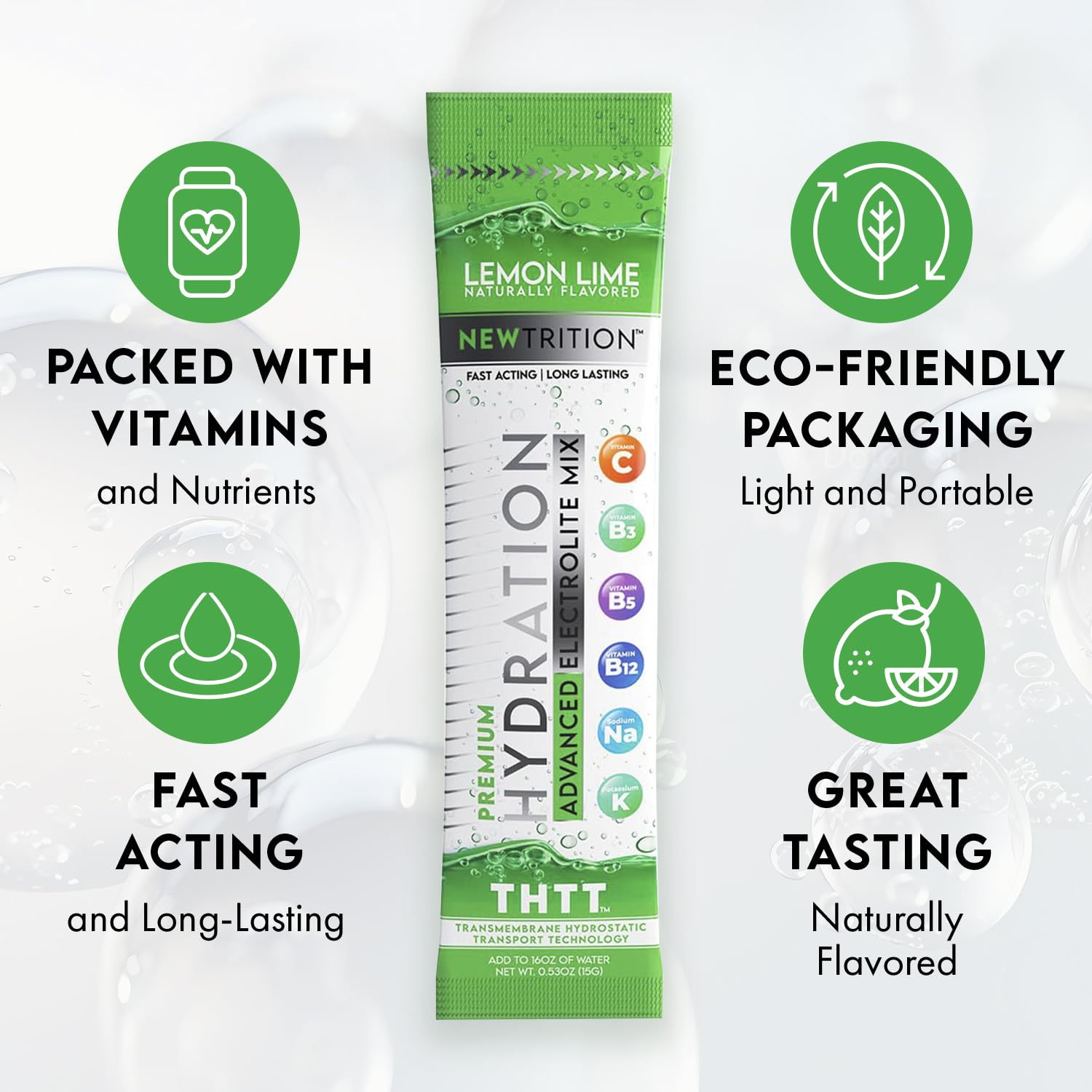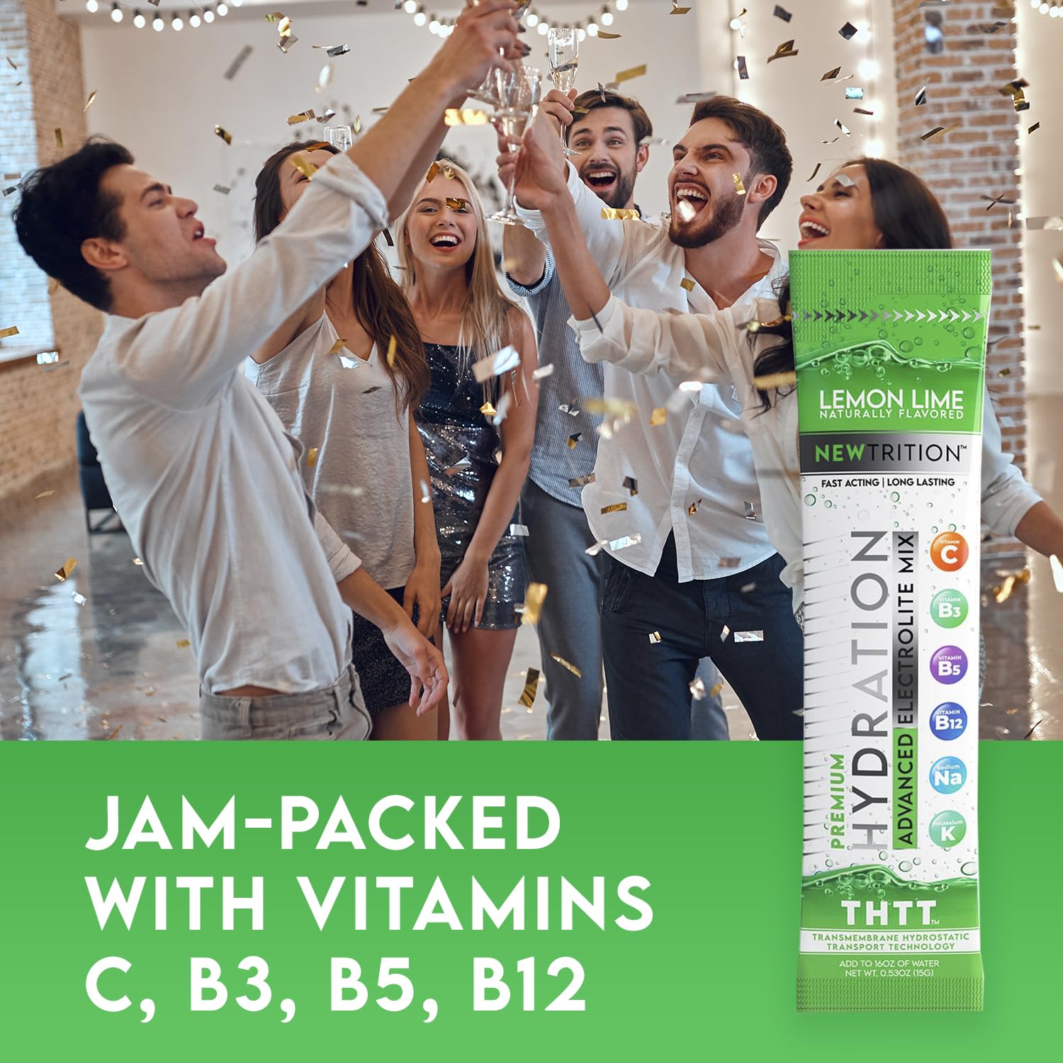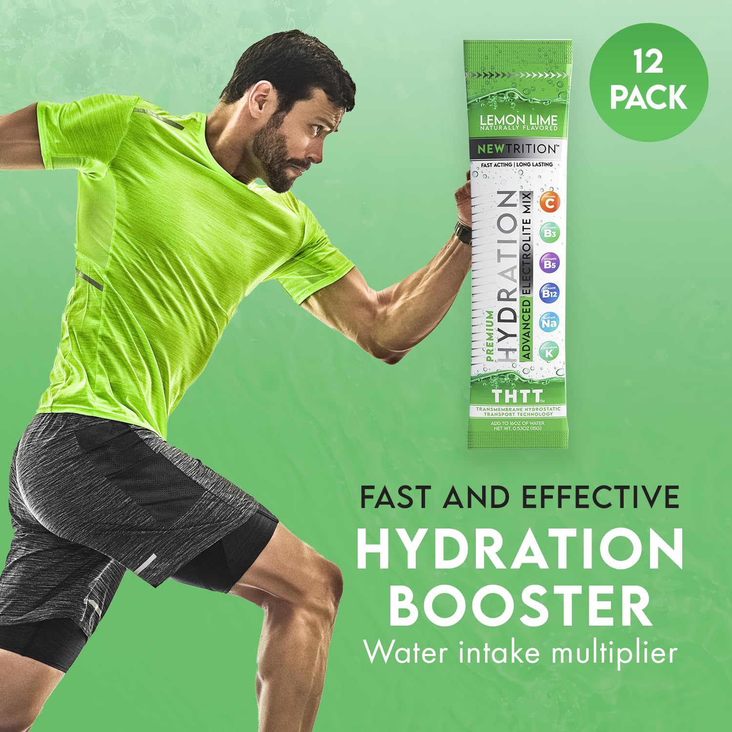 NewTrition Hydration Powder, Electrolyte Powder Packets, Naturally Flavored Hydrating Packets for Water, Fast Acting Hydrate Electrolytes with Vitamins C & D, Lemon Lime, 12 Servings