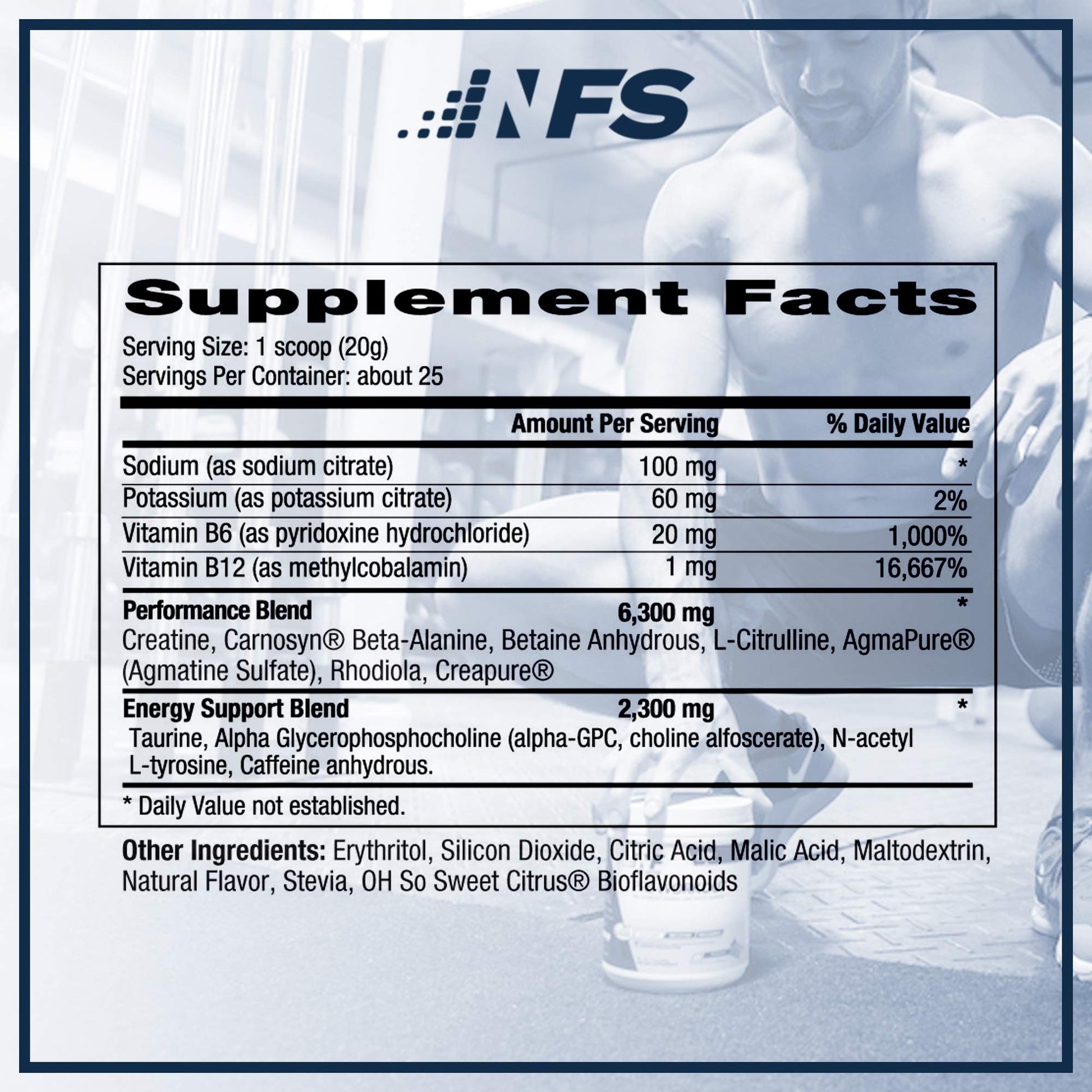 - This pre-workout has been tried and tested. With the ideal formula, this pre-workout contains the perfect combination of Taurine, Caffeine (200mg), Alpha GPC, L-Tyrosine, CARNOSYN BETA-ALANINE, and CREAPURE CREATINE MONOHYDRATE to keep your workout strong, meaningful, and successful. We manufacture all of our NF Sports Products in the USA, ensuring that each batch of supplements meets the highest purity and potency standards.