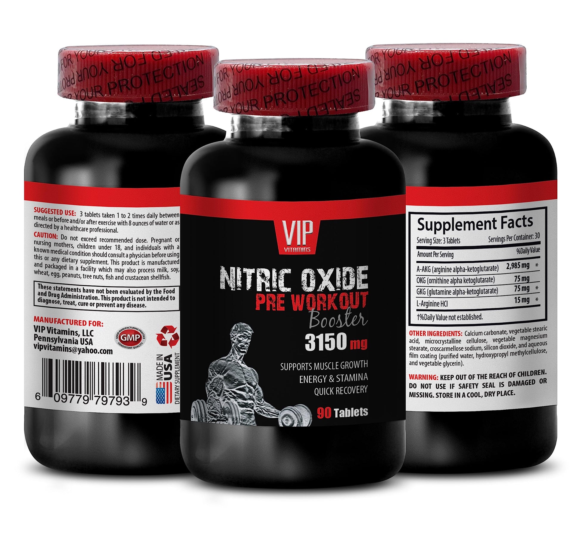 - IMPROVES PRE-WORKOUT EFFICIENCY: Pre Workout Efficiency: VIP VITAMINS nitric oxide booster push your exercise to a new level. The strong combination of the arginine alpha-ketoglutarate, ornithine alpha-ketoglutarate, glutamine alpha-ketoglutarate work synergistically to increase nitric oxide production, bring you strong muscular pumps and endurance, and delay fatigue in the gym.