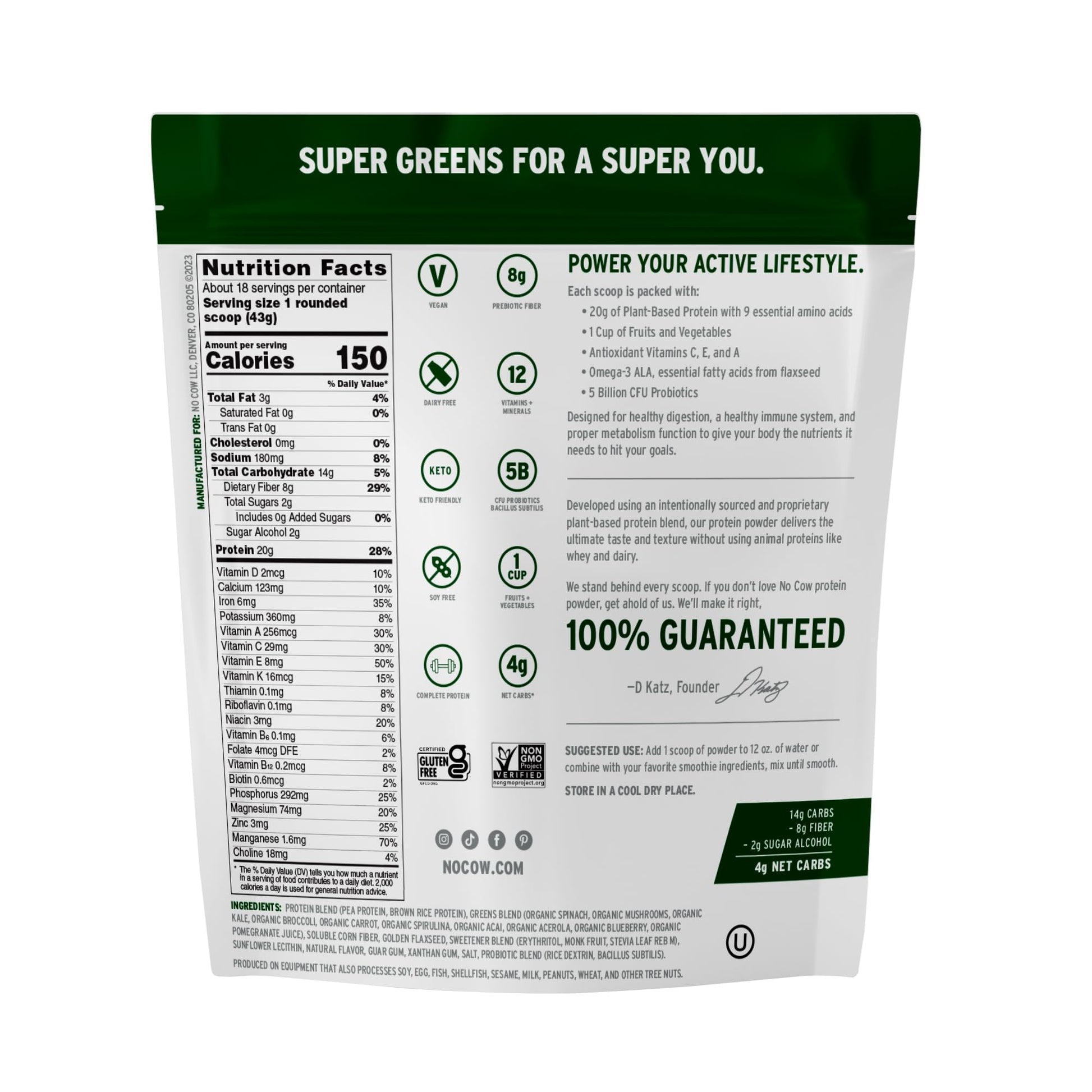 No Cow Plant-Based Protein Powder Plus, 20g Protein with 9 Essential Amino Acids & Super Greens, 5 Billion CFU Probiotics Bacillus Subtilis for Healthy Digestion, Perfect Breakfast Start