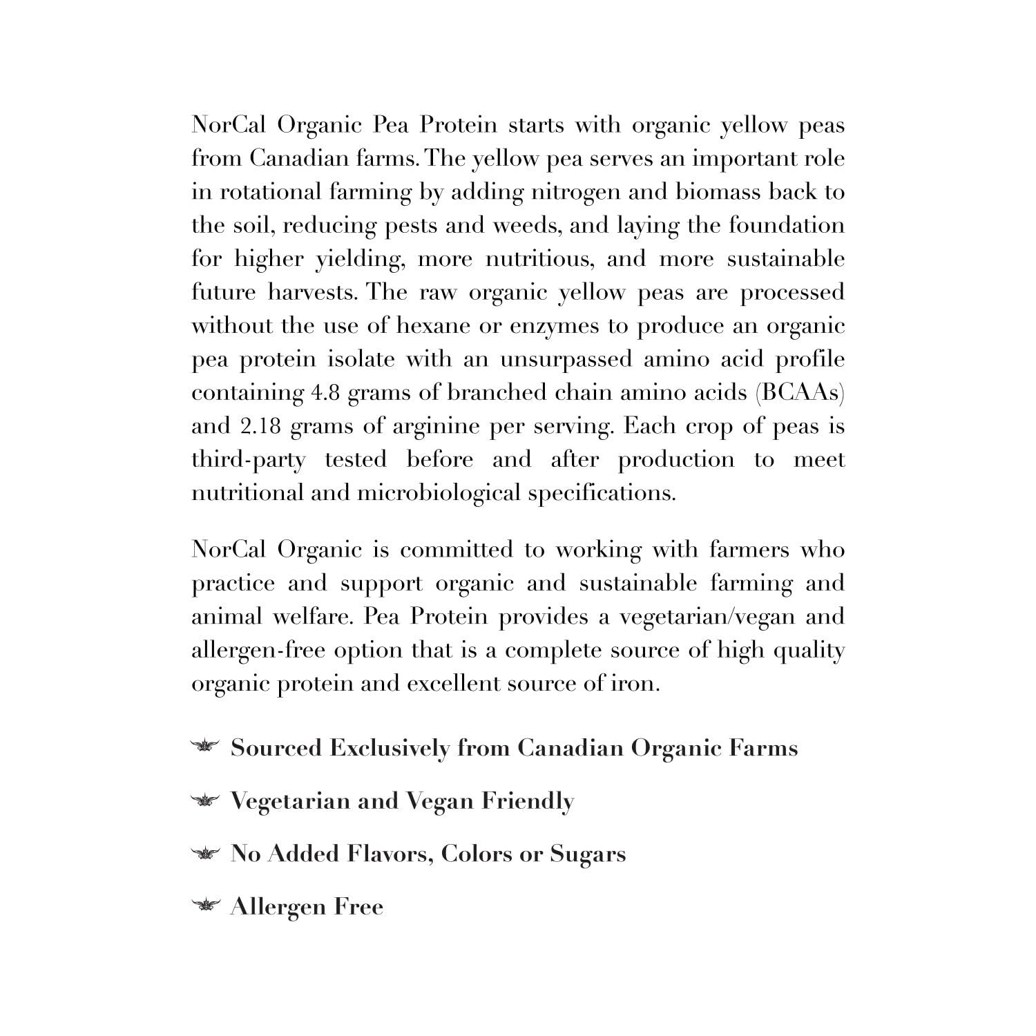 NorCal Organic - Premium Pea Protein Isolate - 100% Vegan and Organic - UNFLAVORED - 2 Pounds (Pack of 1) - 35 Servings