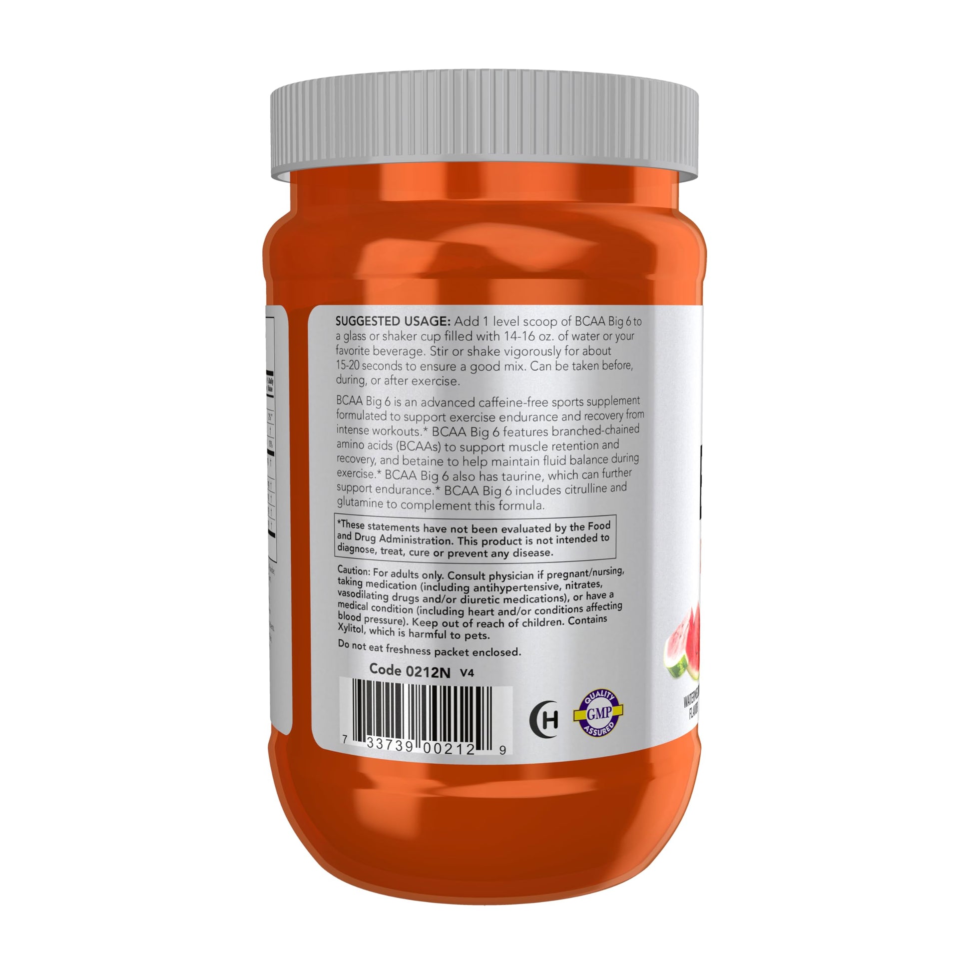 NOW Foods Sports Nutrition, BCAA (Branched Chain Amino Acids) Big 6, Watermelon Flavor, 600 Grams