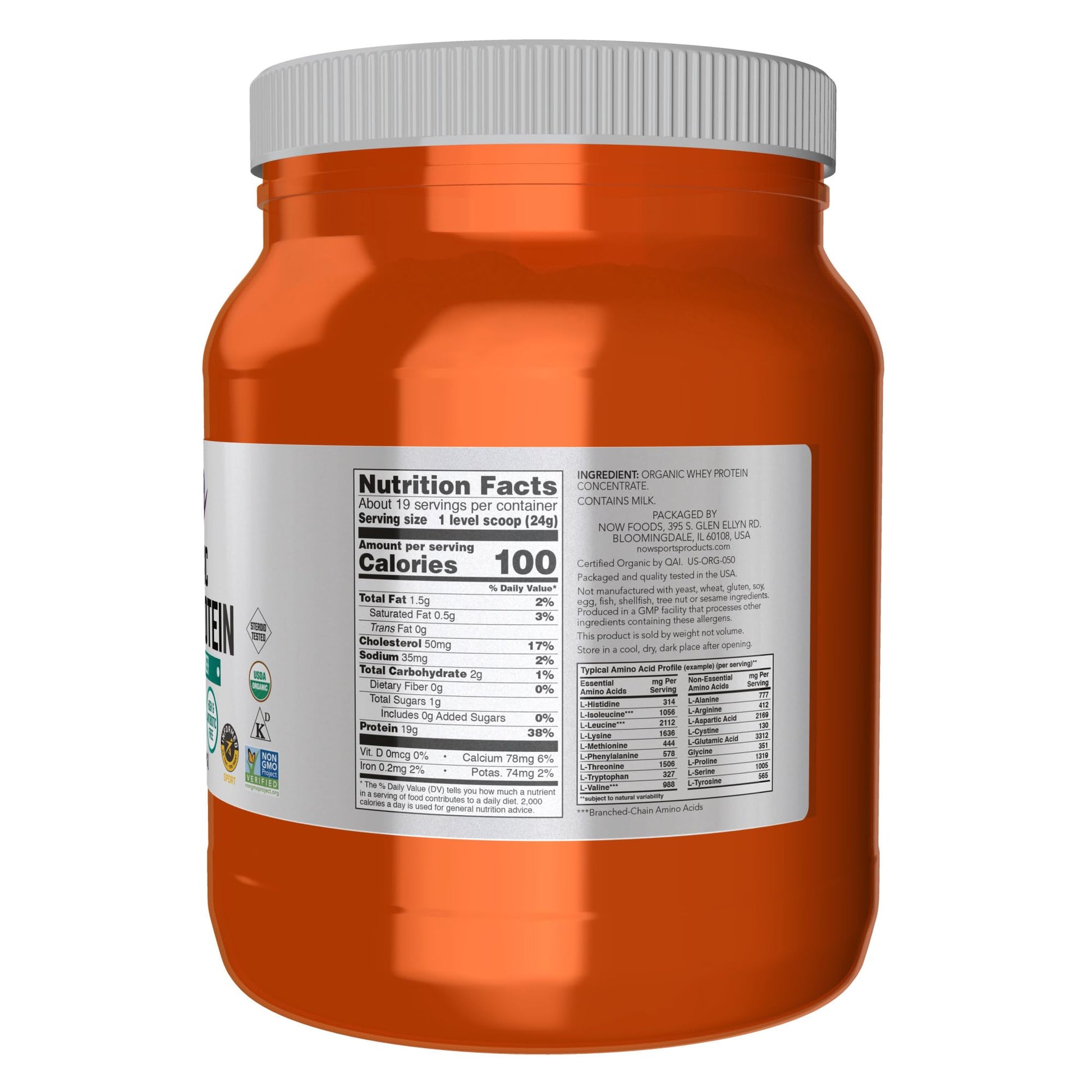 NOW Foods Sports Nutrition, Certified Organic Whey Protein 19 g, Unflavored Powder, 1-Pound