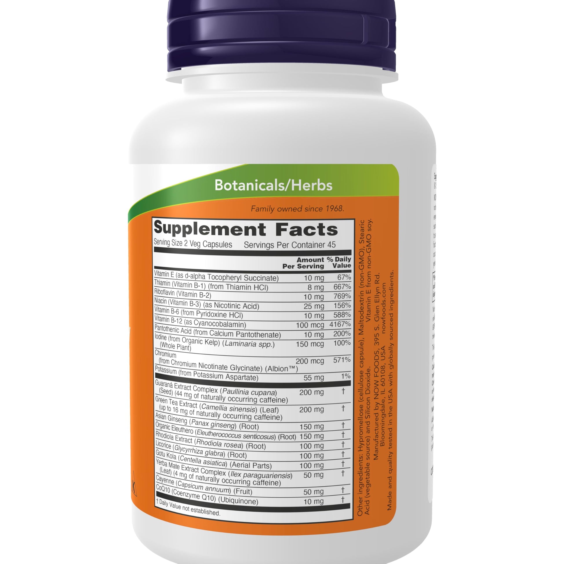 NOW Foods Supplements, Energy Dietary Supplement (lncludes B Vitamins, Green tea, Panax Ginseng and Rhodiola), 90 Capsules