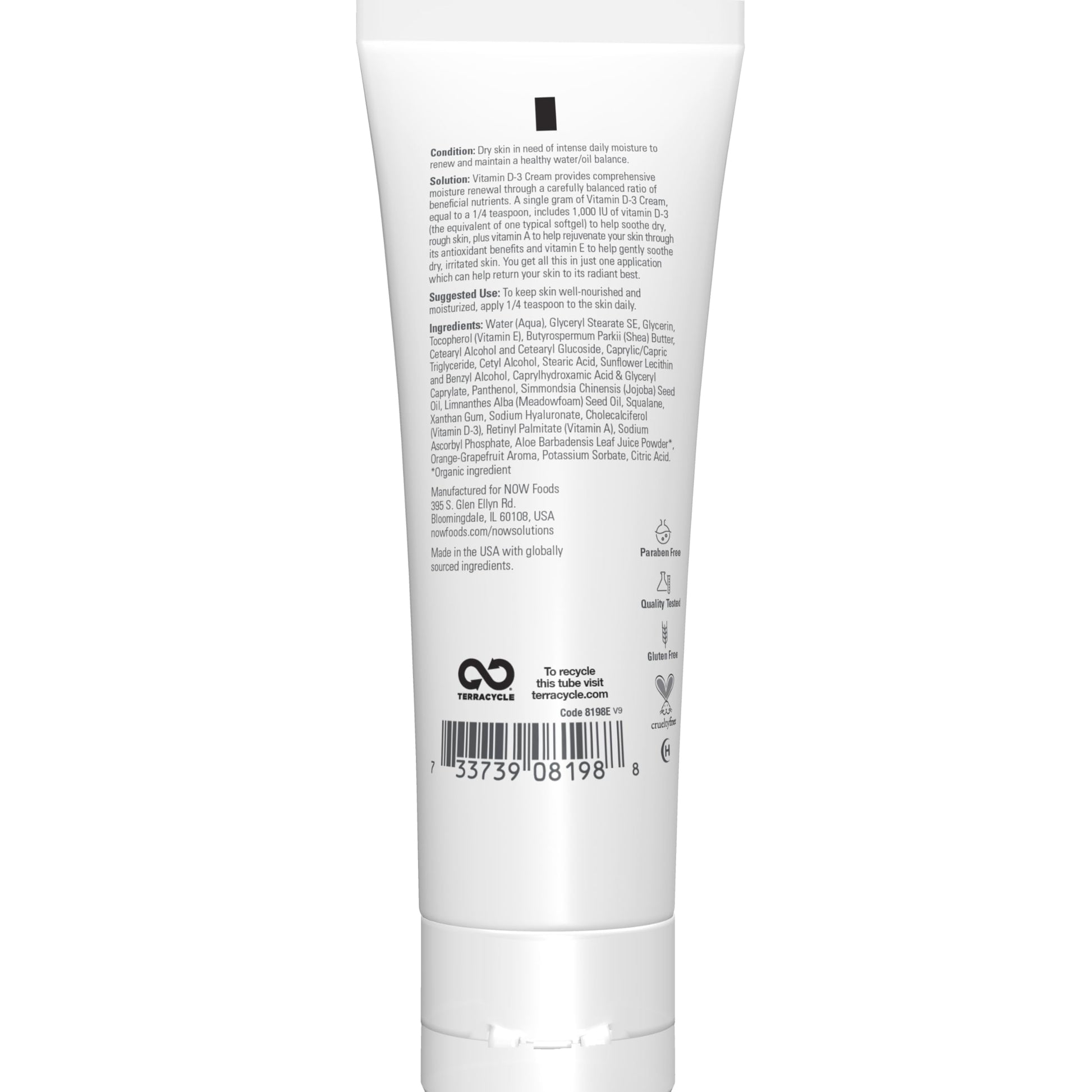 NOW Solutions, Vitamin D-3 Cream 1,000 IU Per Gram, High-Potency, Intense Moisture, 4-Ounce