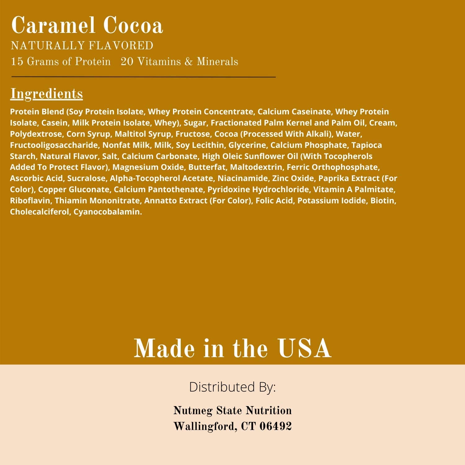 Nutmeg State Nutrition - High Protein Snack Bars, 15g Protein, 160 Calories, Low Sodium, 18 Carbs, 4g Fiber, 7 Servings Per Box (Caramel Cocoa, 1 Pack)