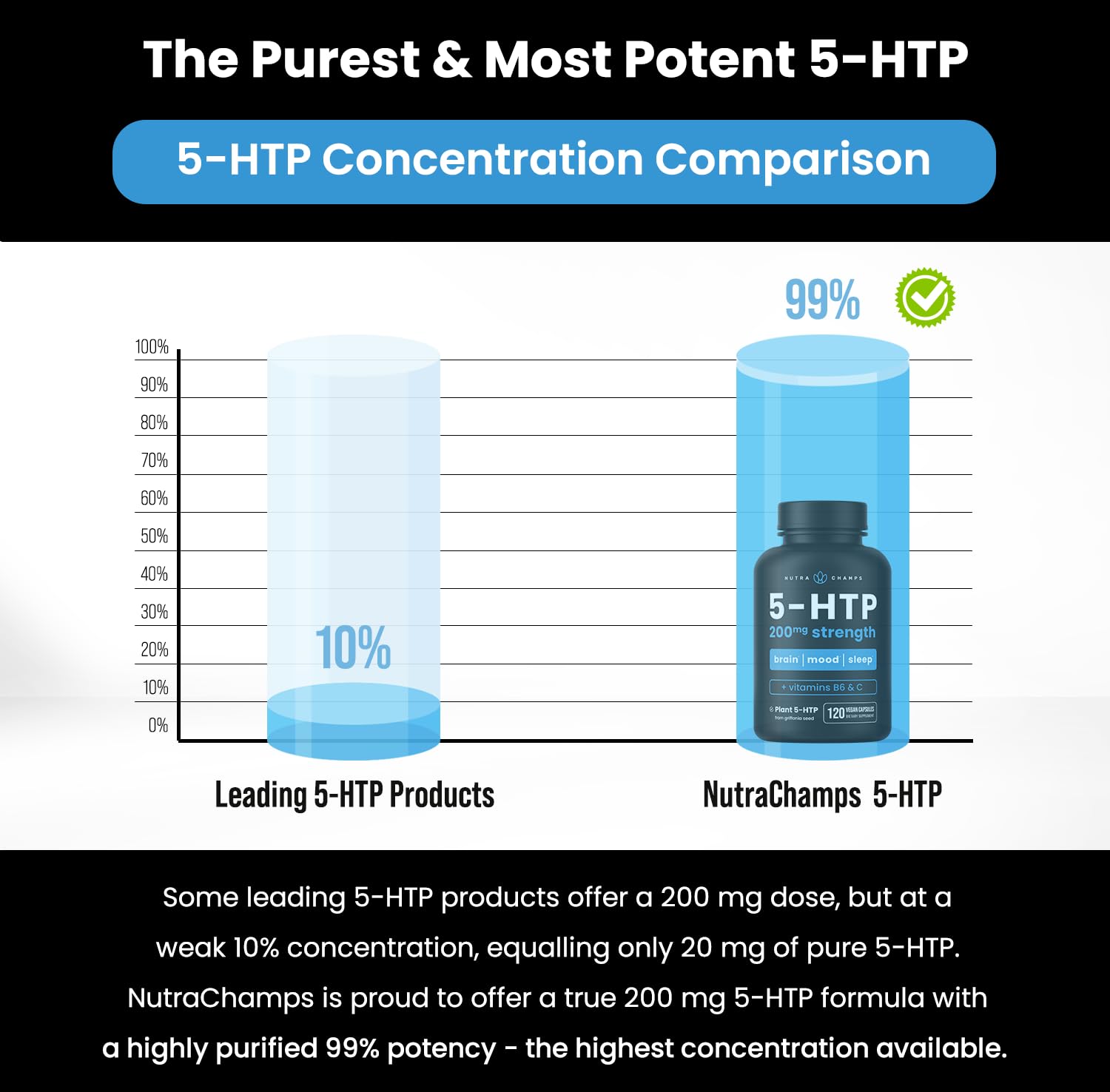 NutraChamps 5-HTP 200mg, 120 Vegan Capsules, Pure 5HTP 100mg Plus Co-Factors Vitamin B6 & Vitamin C