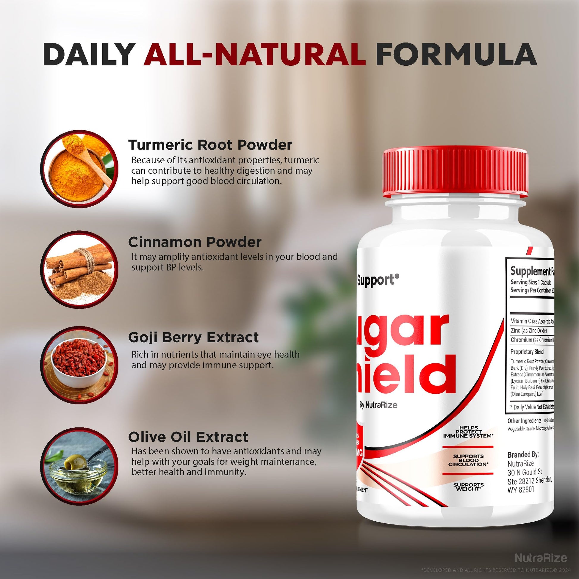 NutraRize (Pack of 2 Sugar Shield Blood Support Pills, Maximum Strength Formula, Capsules, Natural Blood Blend Complex, Reviews (120 Capsules)