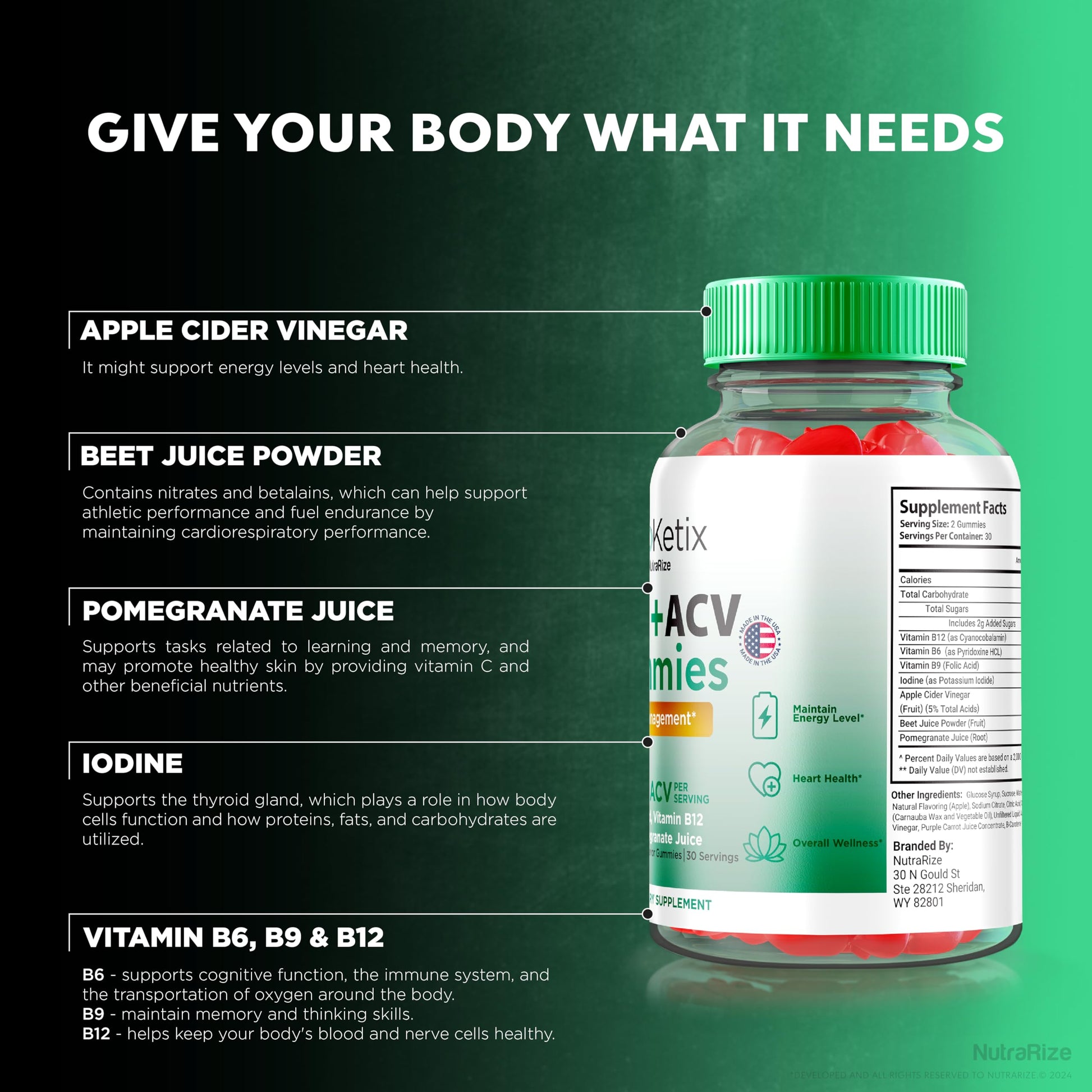 NutraRize (Pack of 3 Bioketix Keto+ACV Gummies, All Natural Apple Cider Vinegar 1000 MG, Keto+ACV Supplement, Wellness Gummy, Gomitas Review (180 Gummies)