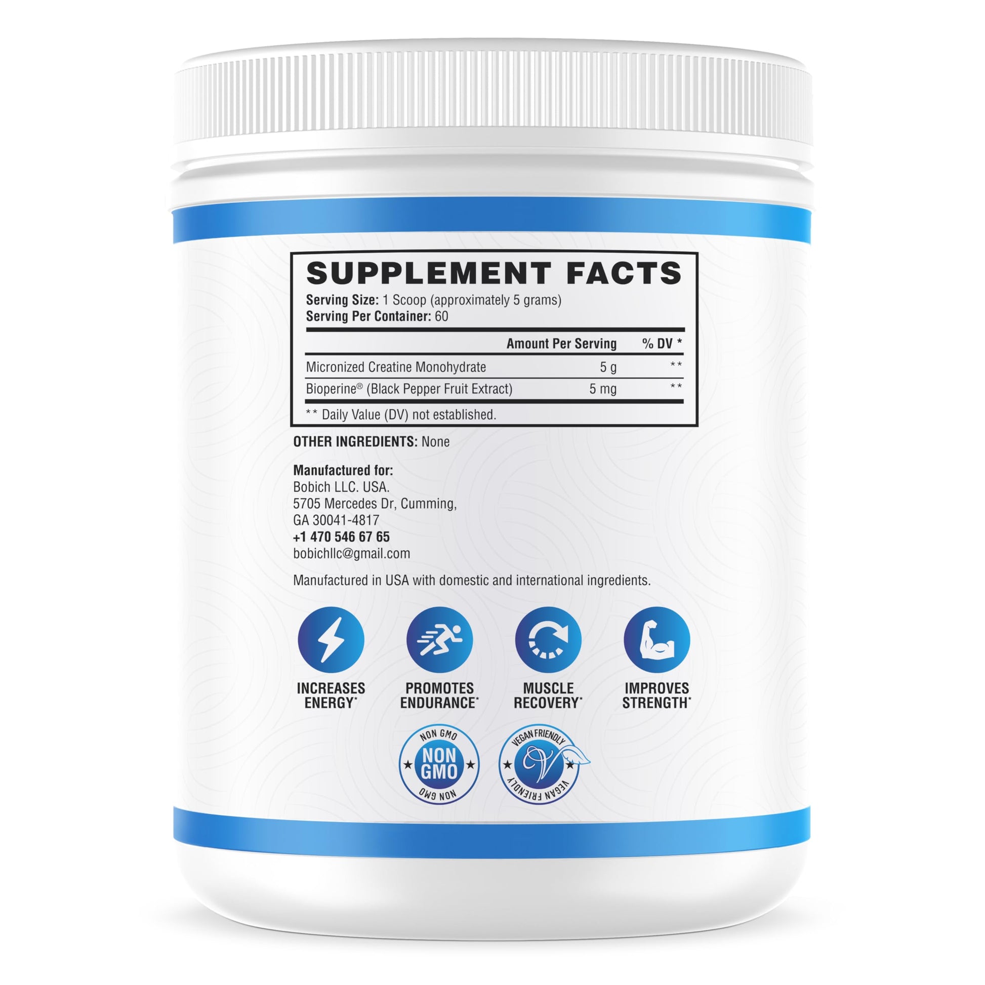 - Optimal Serving Size - 5000mg serving with pure Creatine Monohydrate powder and added BioPerine for faster results. Scooper included.