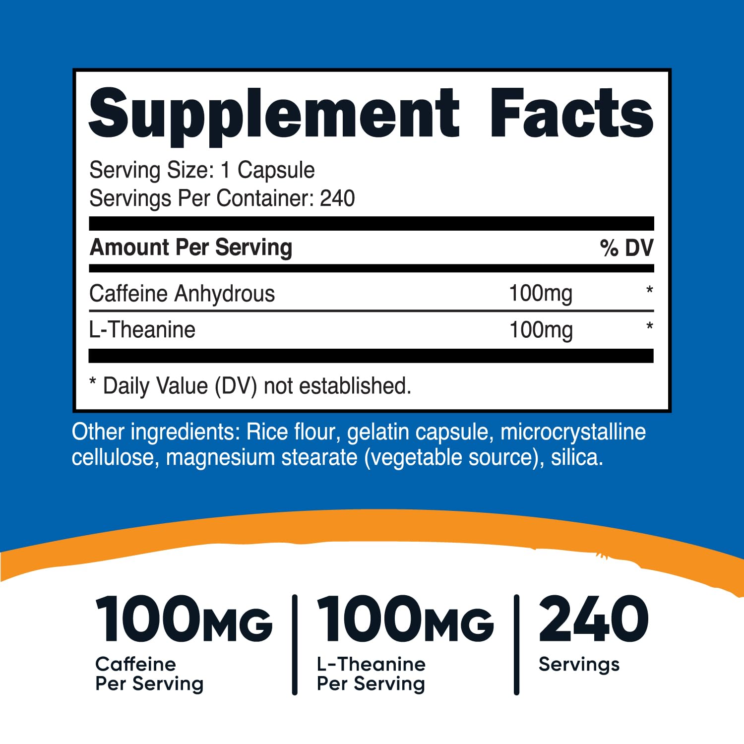 - Versatile Use: Nutricost Caffeine with L-Theanine can be easily incorporated into your daily routine, whether you need a boost of energy, enhanced focus, or a sense of calm and relaxation.