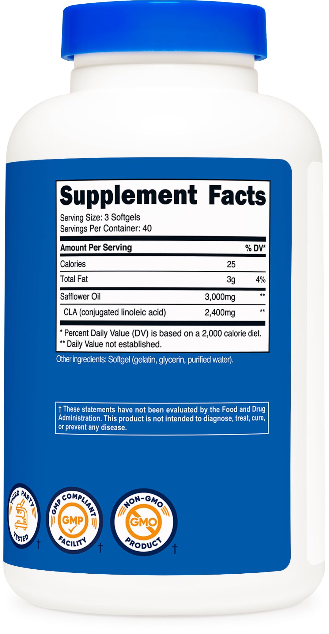 Nutricost CLA (Conjugated Linoleic Acid) 2,400mg, 120 Softgels - Gluten Free, Non-GMO, 800mg Per Softgel