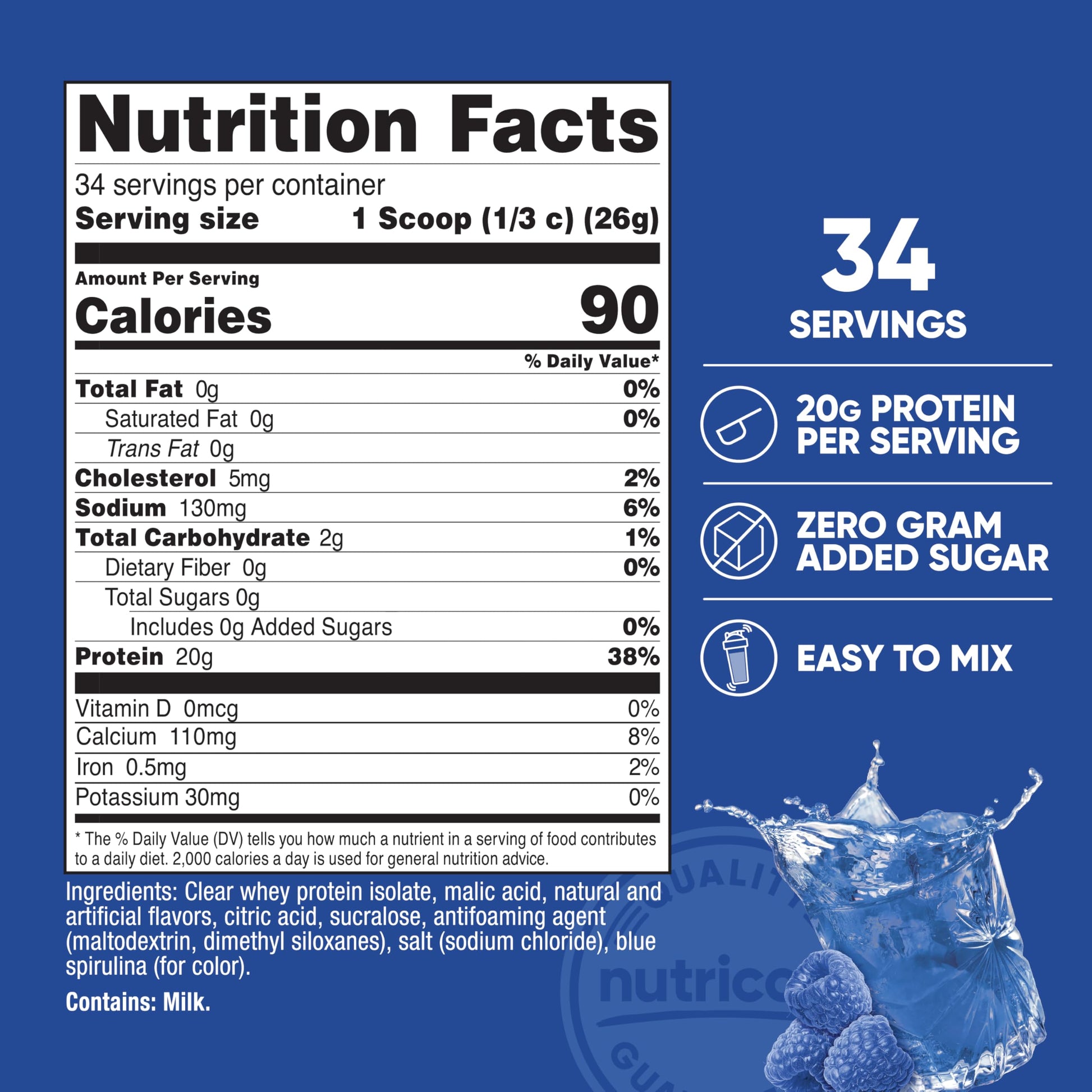 Nutricost Clear Whey Protein Isolate 2 LBS (Blue Raspberry Flavored) - 20G Protein Per Serving, GMO-Free, Gluten-Free