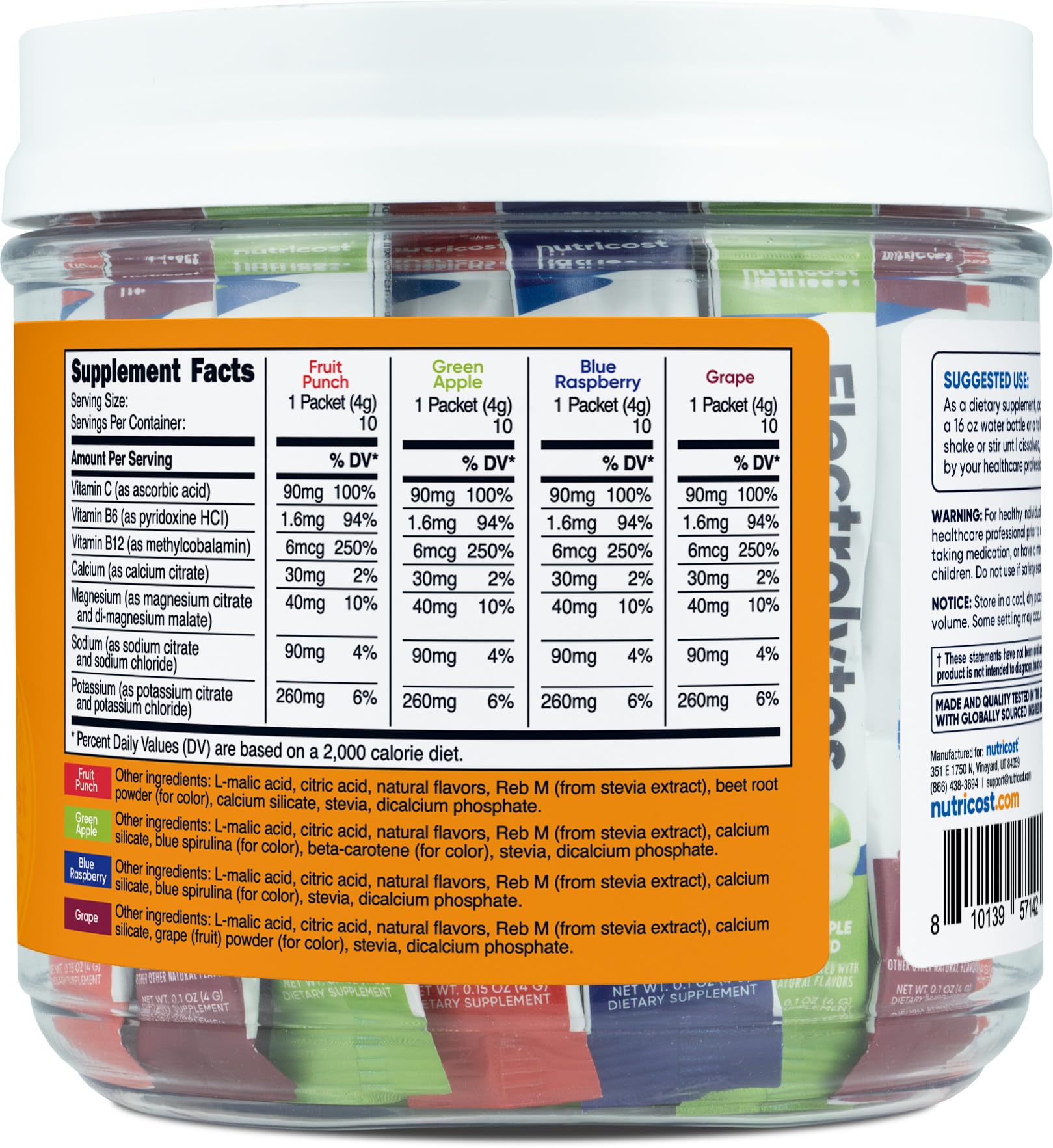 Nutricost Electrolytes Complex, Variety Pack Flavored, 40 Stickpacks - Advanced Hydration Complex