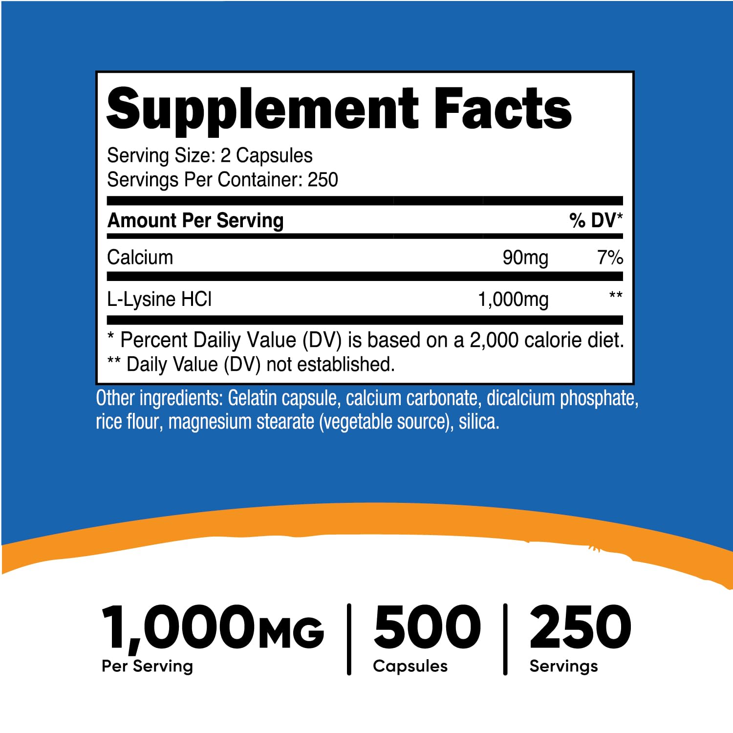 - 500mg of Premium L-Lysine Per Capsule, 1000mg Serving