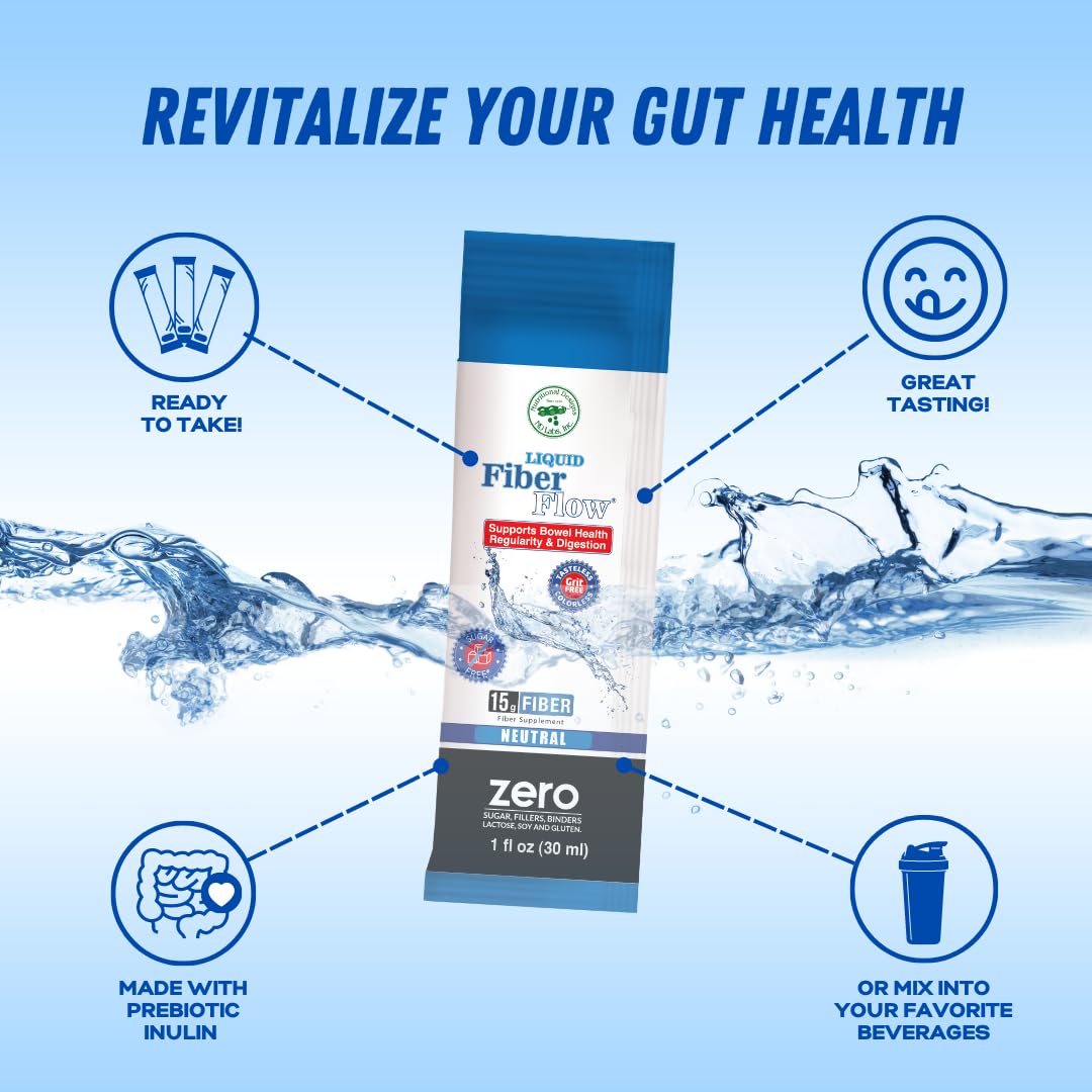 - INDIVIDUAL PACKET: Comes in a conveniently size individual package, making it easy to take along on-the-go. Our packets are easy to open and contains 1 oz of Liquid Fiber Flow. Do not refrigerate or expose to excessive heat.