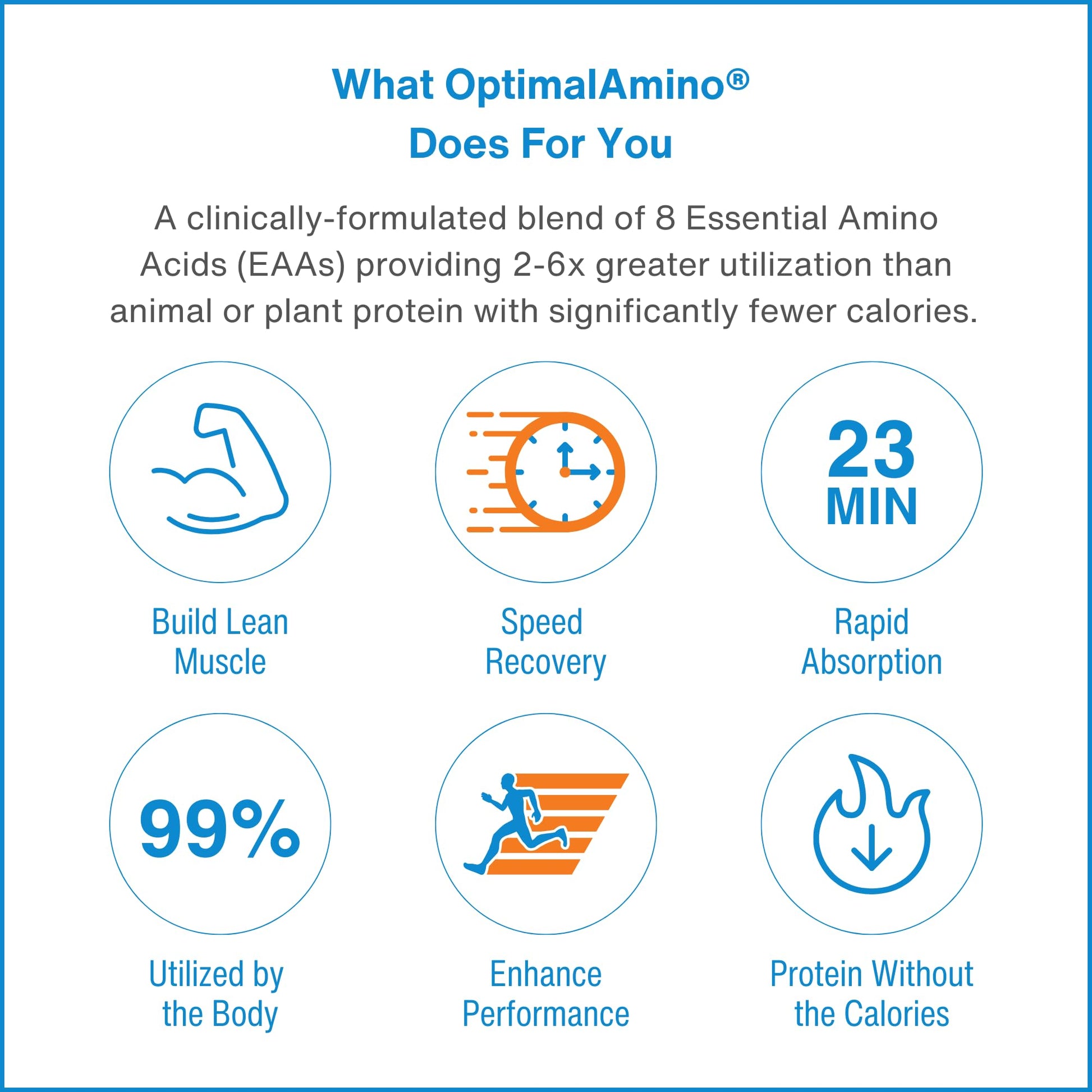 - Maximize Protein Utilization: One 13 gram serving of OptimalAmino provides the usable protein equivalent of 58g of protein from whey, dairy, nuts or soy*, 30g of protein from meat, poultry or fish,* or 20g of protein from whole eggs.*