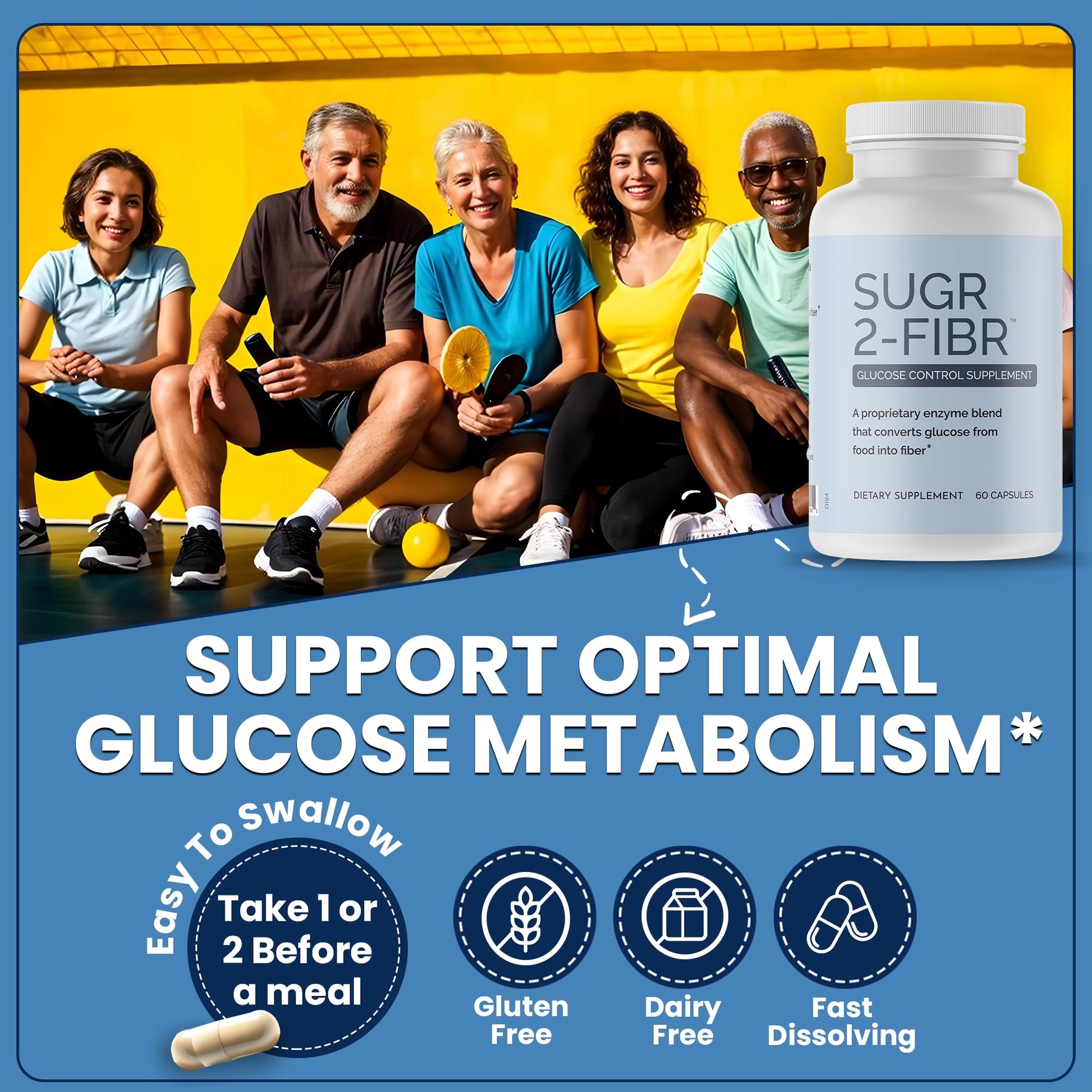 OPTIVIDA Sugr-2-Fibr - Premium Blood Sugar Support Supplement* (60 Count) - Support Healthy Blood Sugar Levels* by Supporting Glucose Metabolism to Fiber* - Gluten Free, Non GMO, Veggie Capsules.