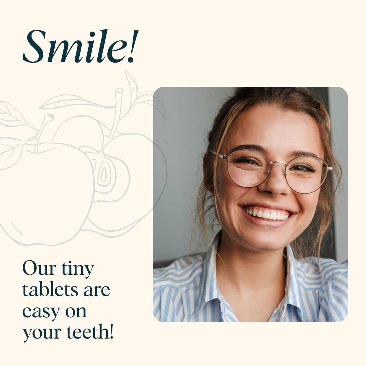 - Tastes Like Sour Apple Candy: Ora's 100% organic, clean, and delicious green apple flavored ACV tablets are easy to swallow and avoid the downsides of liquid ACV. By taking apple cider vinegar in tablet form, instead of liquid or gummies, you're stopping the erosion of tooth enamel from acetic acid. Just a little something to smile about.
