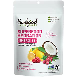 Organic Superfood Hydration & Energize Powder with Electrolytes & B Complex - Cran-Raspberry (8 Oz. / 20 Servings)