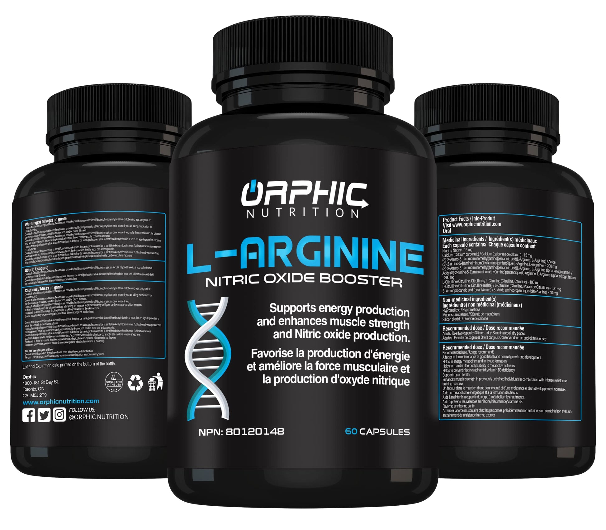 ORPHIC NUTRITION L Arginine Supplement for Men 1000mg+ - 60 Capsules - L Citrulline and Nitric Oxide Supplement to Support Muscle Health, Exercise Endurance, Vascularity, Heart Health, Energy Levels*