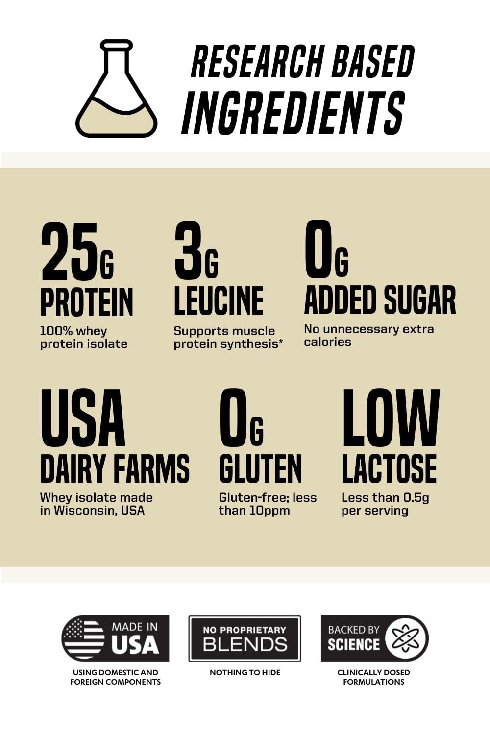 - Backed By Science: Crafted in cutting-edge laboratories, this protein powder is backed by advanced scientific research; Each serving contains minimal carbs and fats to optimize performance; With 3g of leucine it offers a scientifically validated solution to help you meet your protein objectives