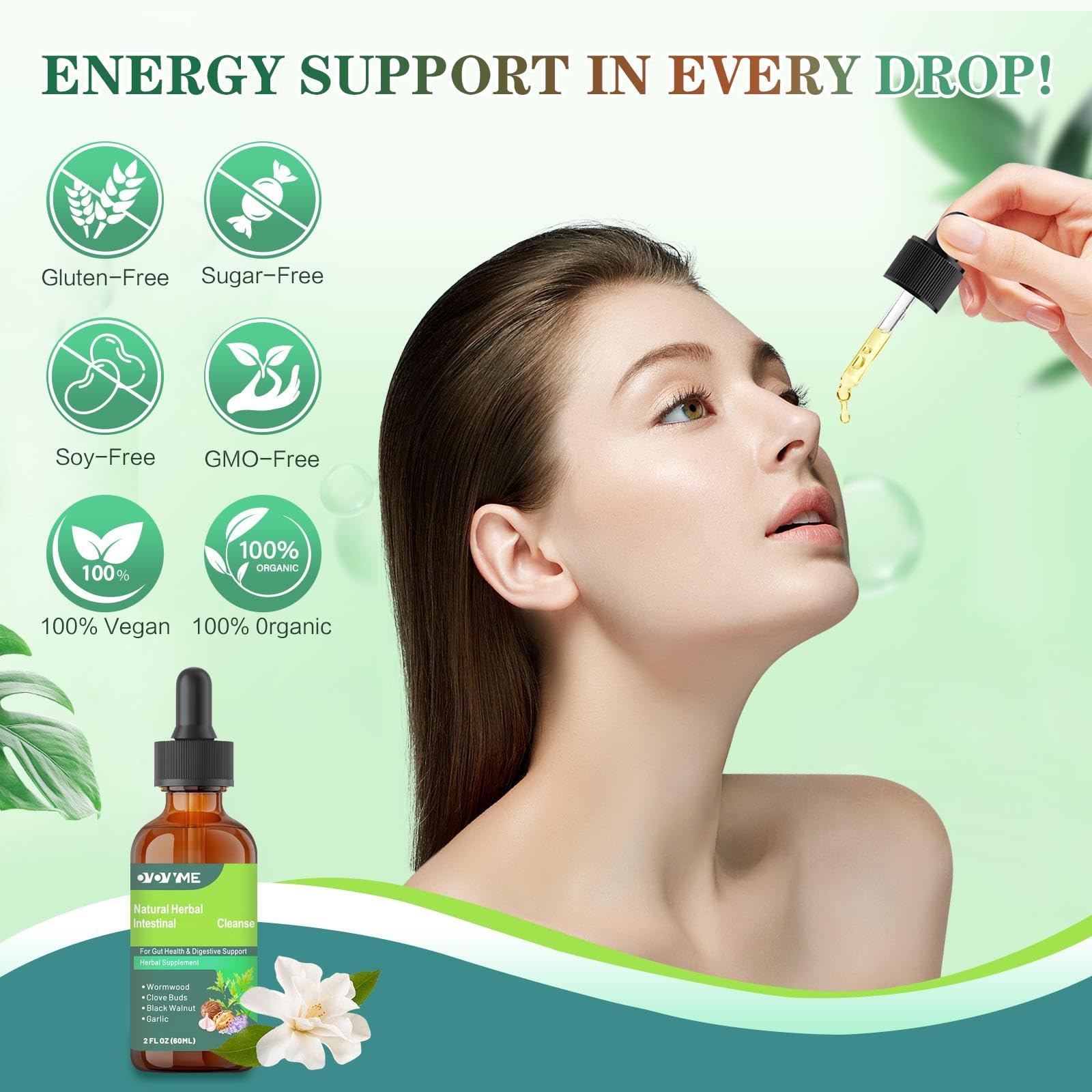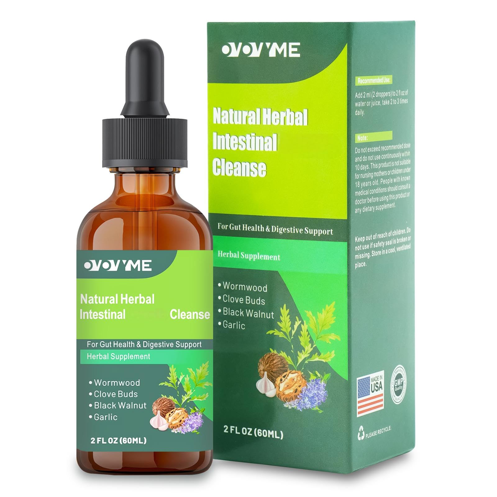 OVOVYME Natural Herbal Intestinal Cleanse, 2 fl oz, Gut Health Support with Wormwood, Black Walnut, Clove, Garlic