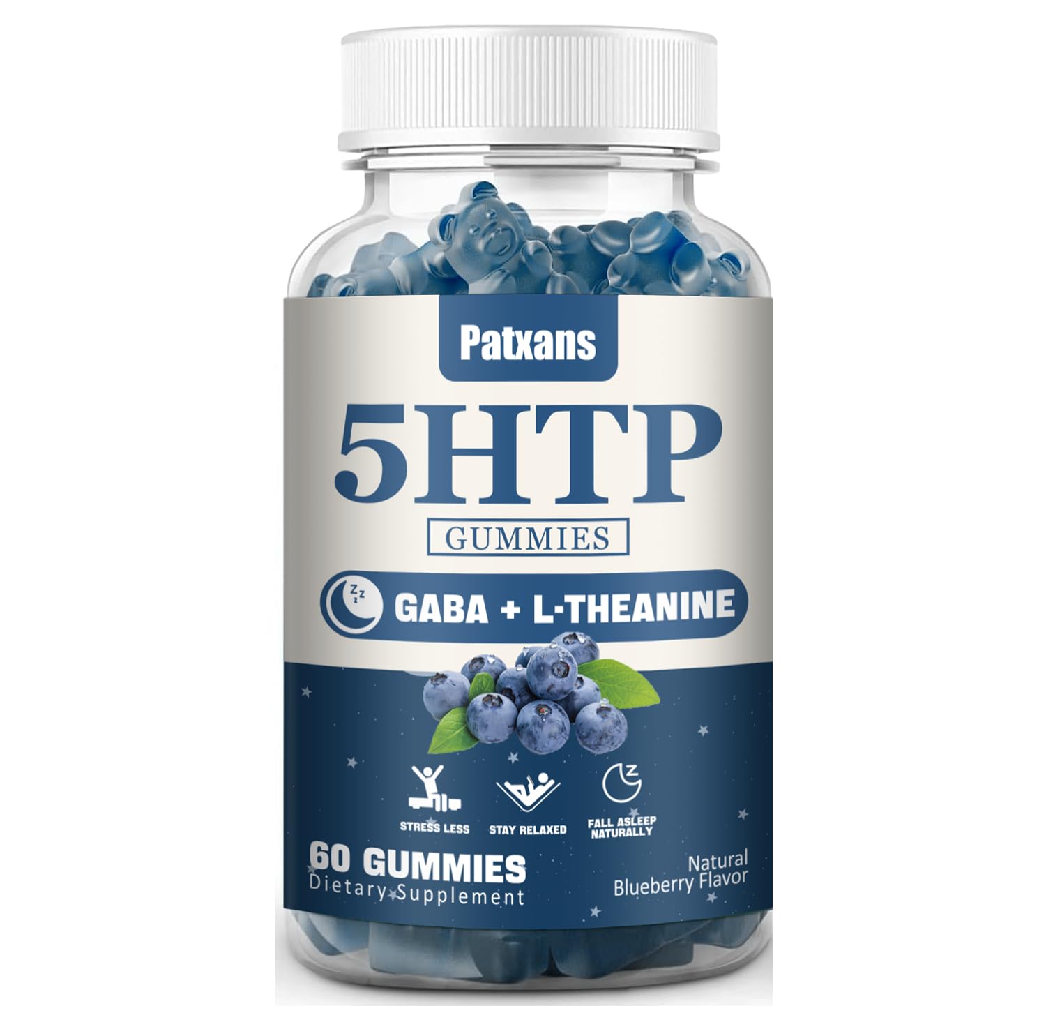 - [Keep The Brain Calm and Relaxed]: Patxans 5HTP gummies sweets contain GABA (gamma-aminobutyric acid), which also promotes relaxation and helps calm the brain when excited, and L-theanine also has a relaxing effect, which can further help the brain transition from daily exertion to a relaxed state. Reduce thoughts before going to bed and improve sleep quality.