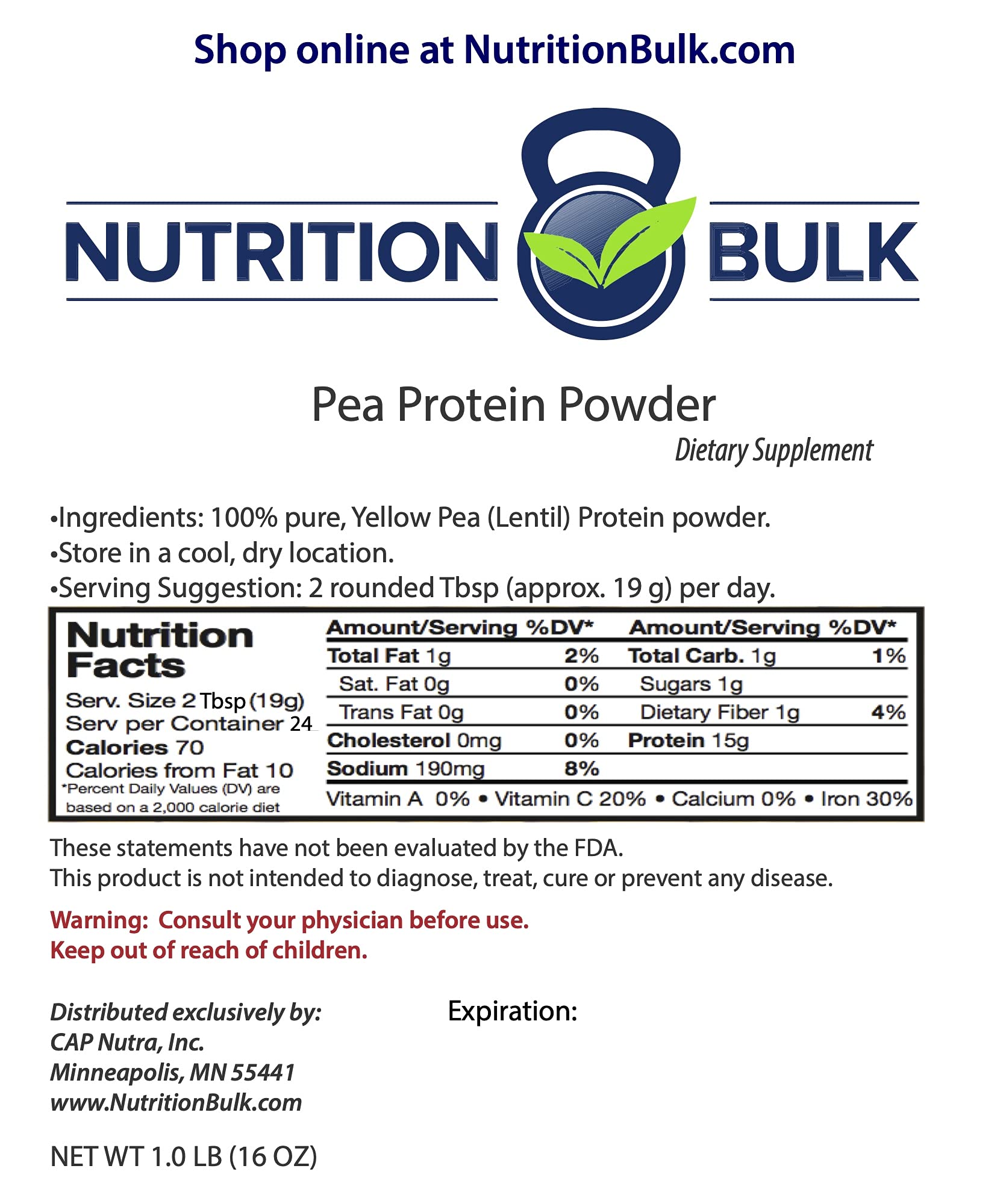Pea Protein Powder - NutritionBulk.com, Isolate, Unflavored, Dairy-Free, Keto, Vegan, Gluten-Free, Non-GMO (1 lb)