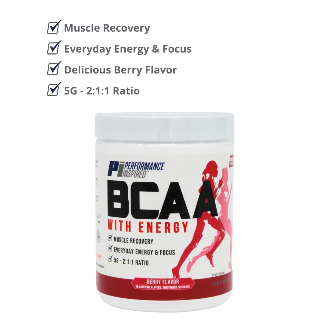 PERFORMANCE INSPIRED Nutrition BCAA with Energy - 5G BCAA, 480mg CherryPURE, 160mg Natural Caffeine - Supports Muscle Recovery & Endurance - Berry Flavor