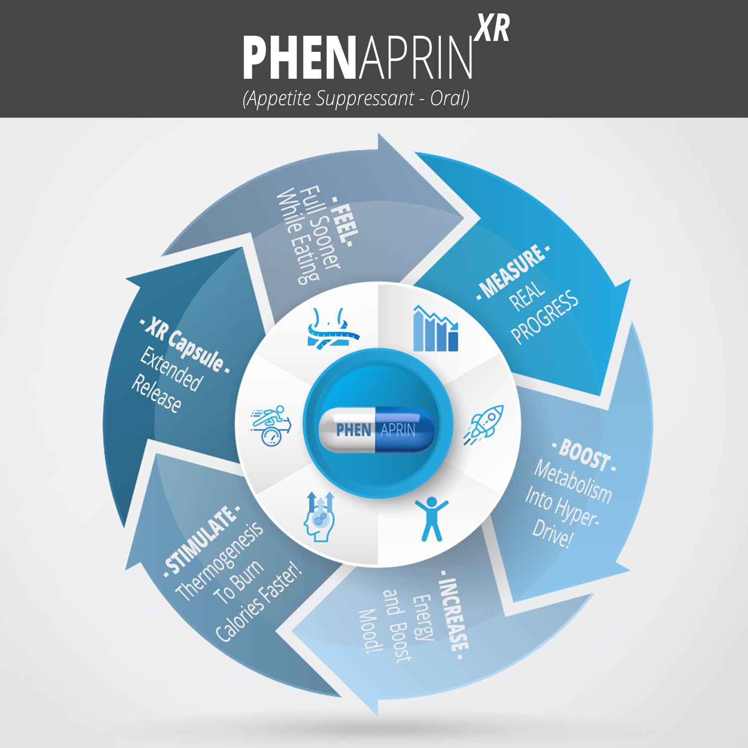 - Supportive Appetite Management: PhenAprin XR is formulated to assist in managing your appetite. It’s designed to complement a health-conscious lifestyle, helping you stay mindful of your eating habits, especially in reducing cravings for sweets and junk food.