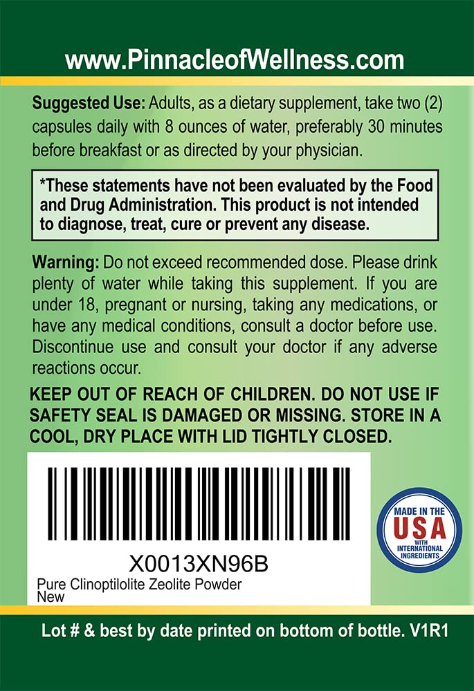 Pinnacle of Wellness Pure Clinoptilolite Zeolite Powder - Detox Cleanse Dietary Supplement - 90 Capsules