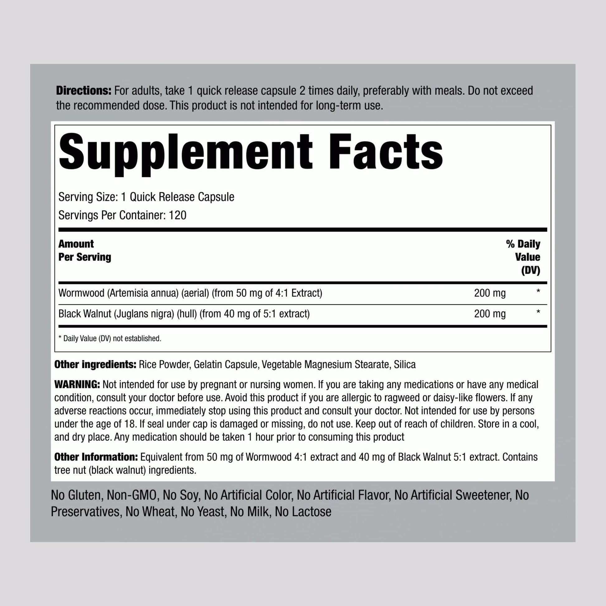 Piping Rock Wormwood Black Walnut Capsules 400mg | 120 Count | Herbal Extract Complex | Non-GMO, Gluten Free Supplement