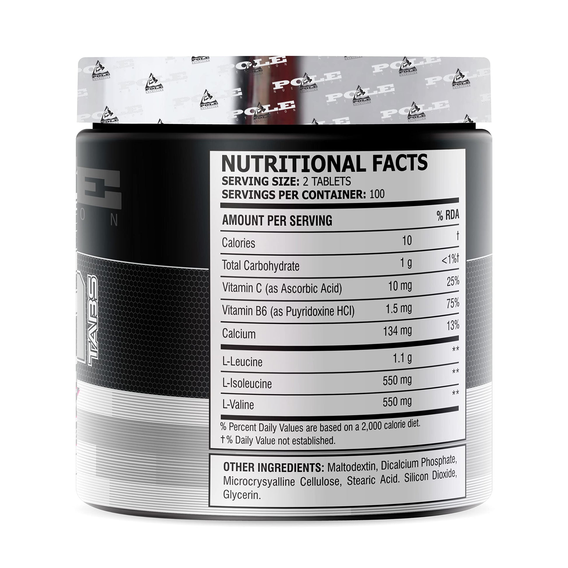 Pole Nutrition BCAA TABS Branched Chain Essential Amino Acids for Muscles Recovery and Performance Includes Vitamins B6 and C | 200 Tablets, 100 Servings