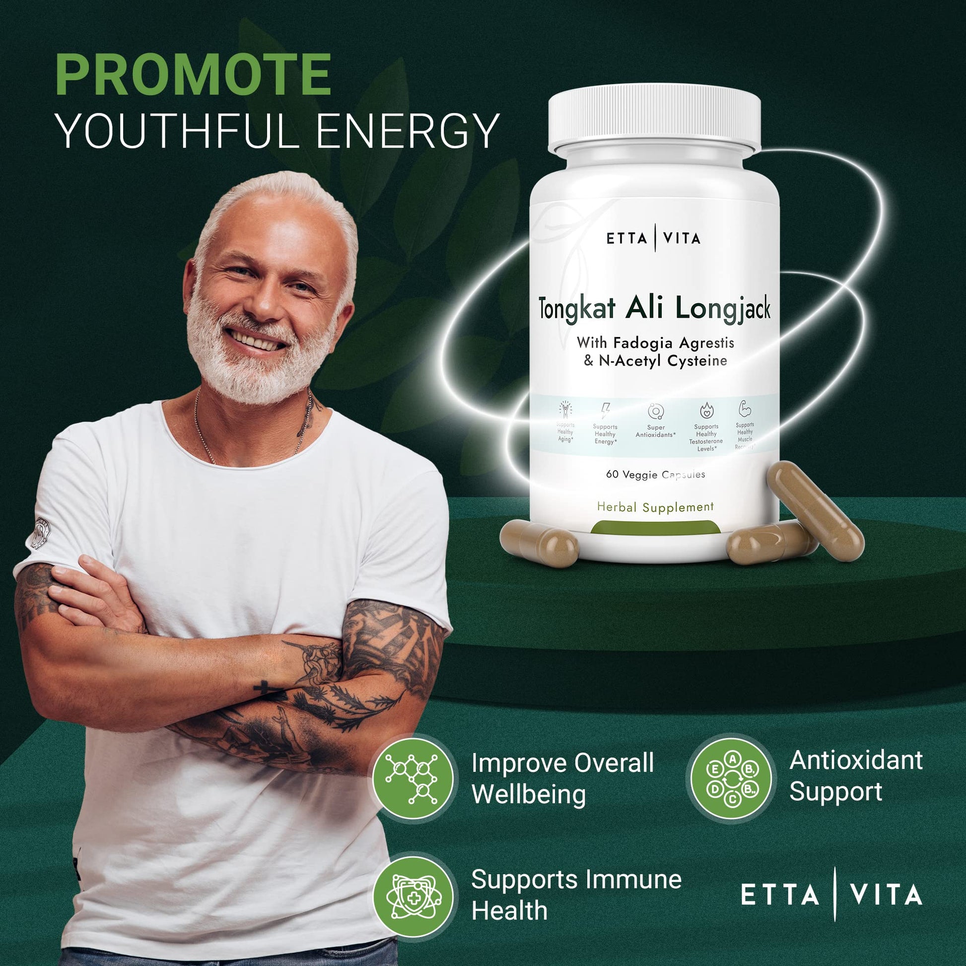- [First Ever NAC-Equipped Test Support]: Health-forward customers often over-indulge in quality products like fadogia agrestis and tongkat ali supplement. Etta Vita’s premium herbal blend contains additional N-Acetyl Cysteine (NAC), an essential antioxidant that helps neutralize free radicals, support liver function, and promote optimal cellular health. This advanced formula offers liver protection from toxicity.