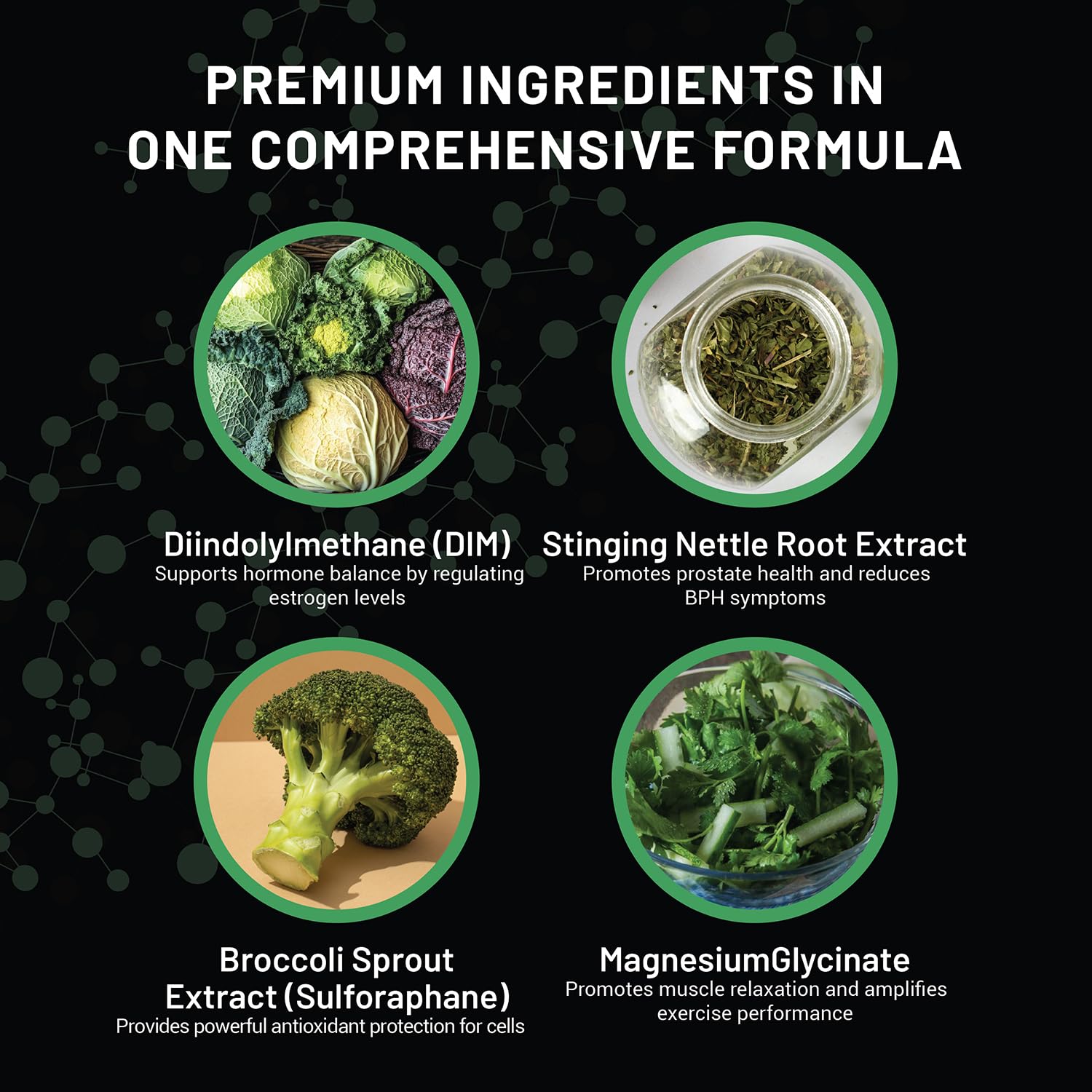 Premium DIM Supplement for Men | Estrogen Blocker & Aromatase Inhibitor | Diindolylmethane, Nettle Root Extract, Magnesium Glycinate & Sulforaphane | Hormone Balance & Liver Protection | 60 Capsules