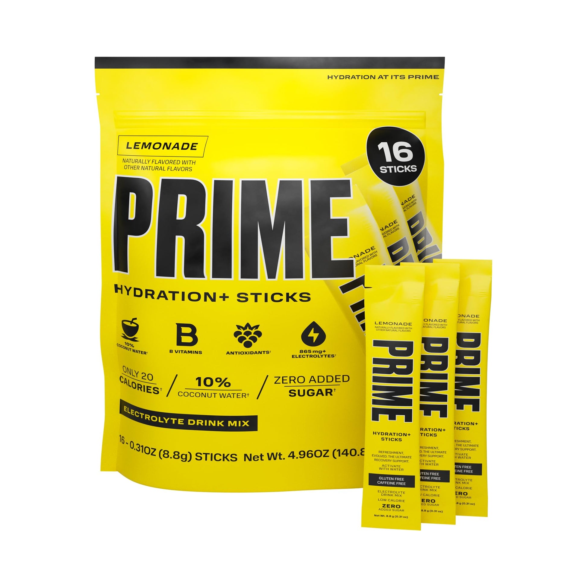 PRIME HYDRATION+ Sticks Lemonade | Hydration Powder Single Serve Sticks | Electrolyte Powder On The Go | Low Sugar | Caffeine-Free | Vegan | 16 Sticks